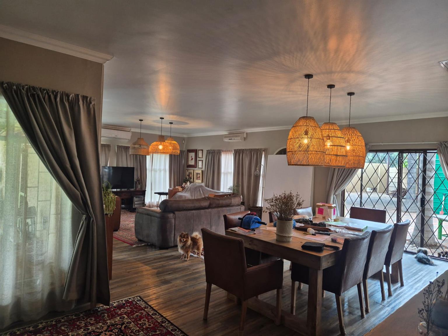 This lovely corner property offers generous space, comfort, and versatility, making it ideal for family living and entertaining. The main house features three bedrooms and two bathrooms, with a spacious layout that includes a dining area, sitting room, TV lounge, and a well-appointed kitchen with scullery. Outside, you'll find two garages, two shade-net parkings, and additional carport space for three to four vehicles. The expansive garden is a standout, complete with a sparkling swimming pool, a strong borehole, and a 10,000-litre water tank connected to an automated irrigation system.