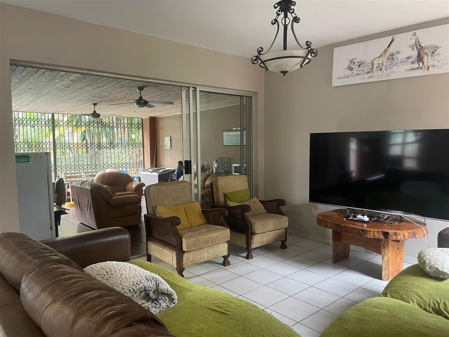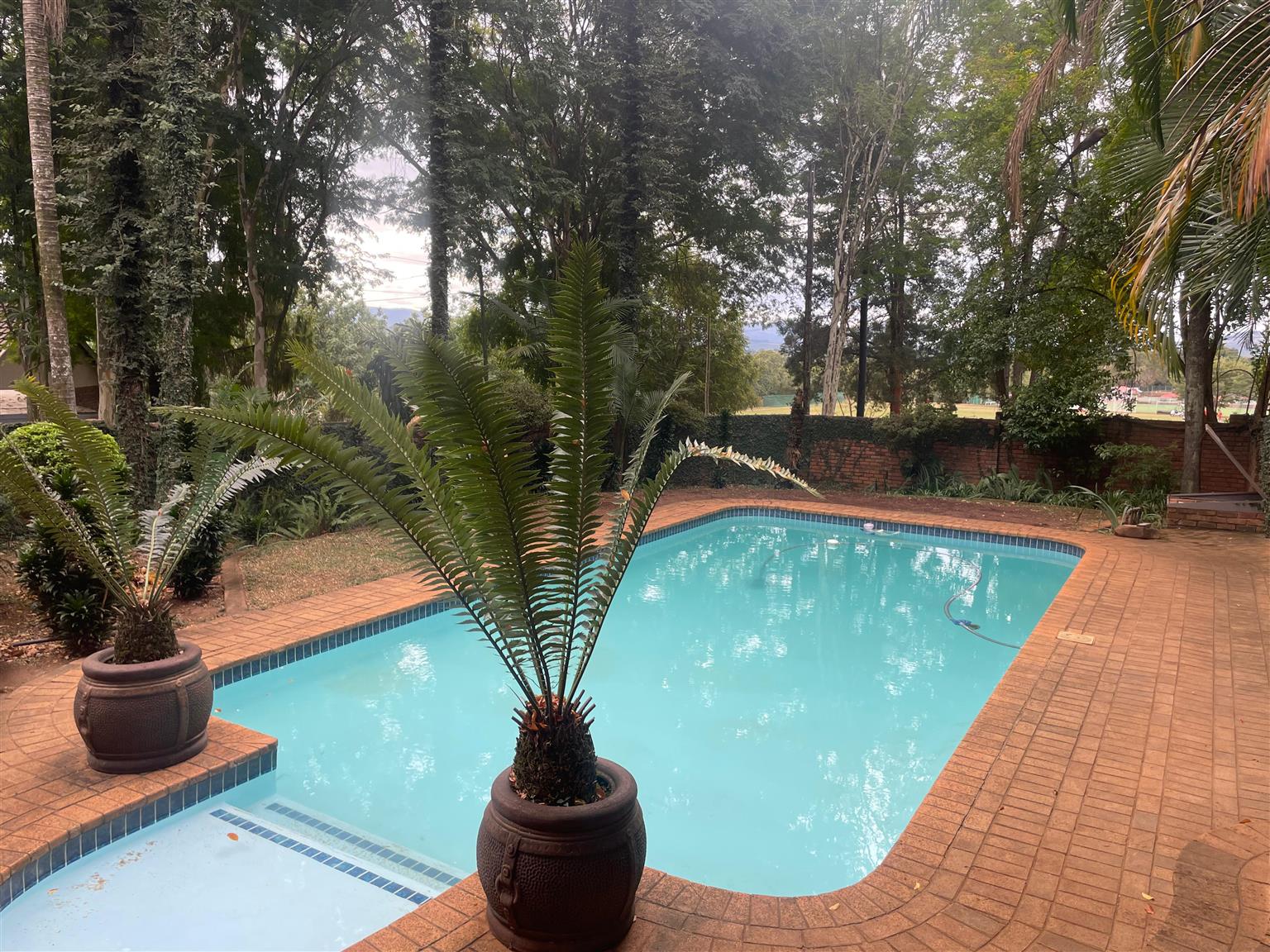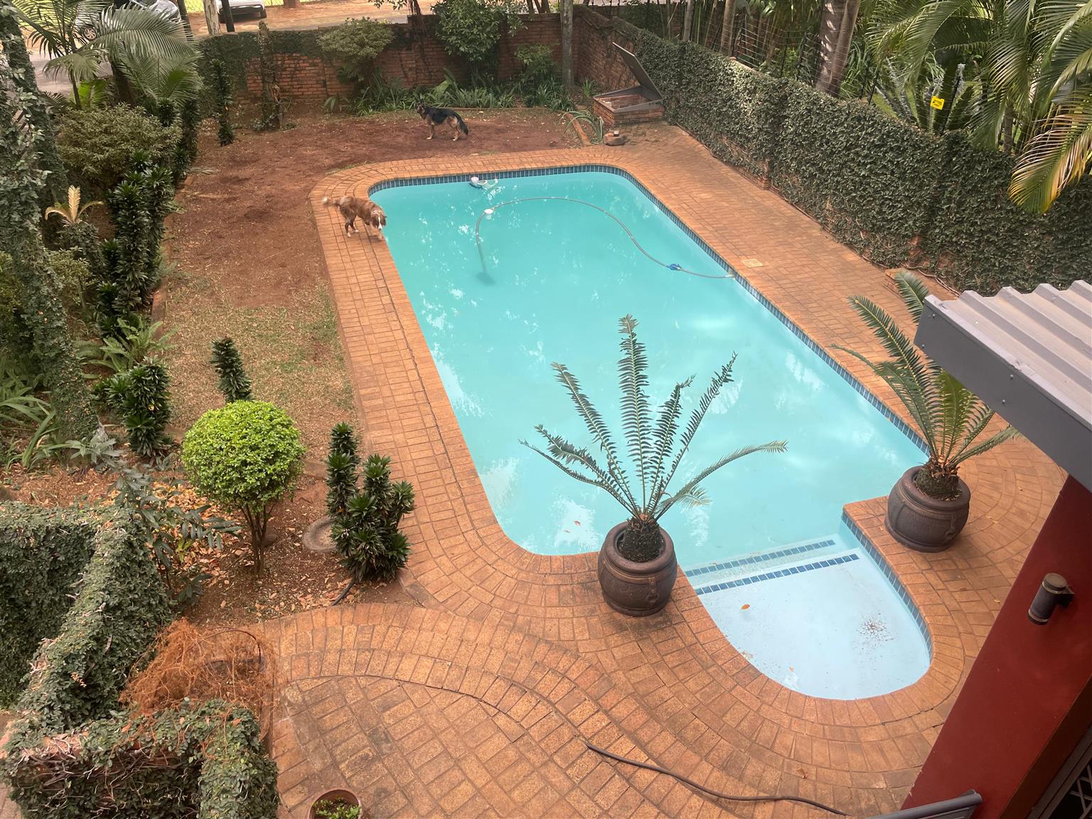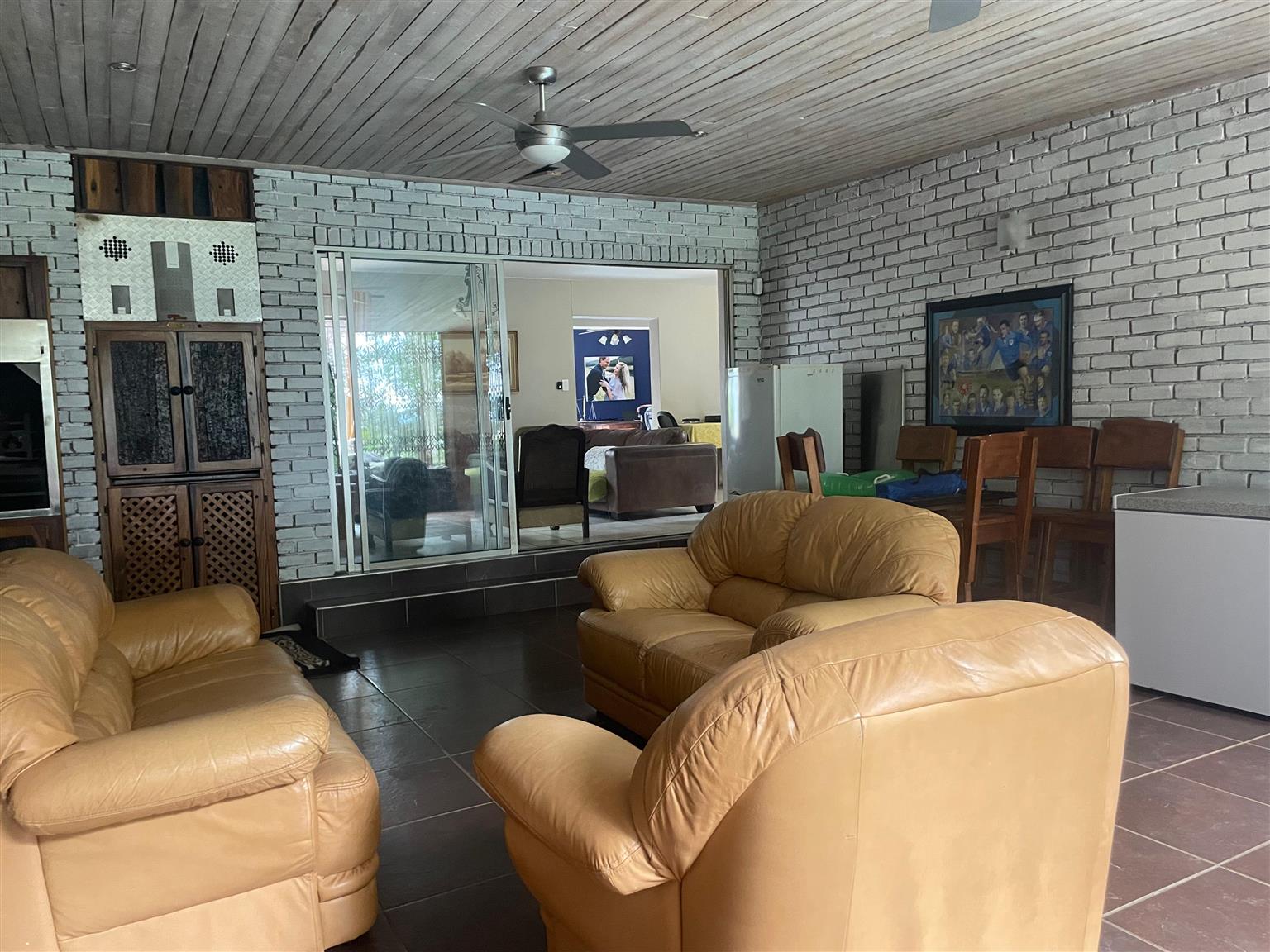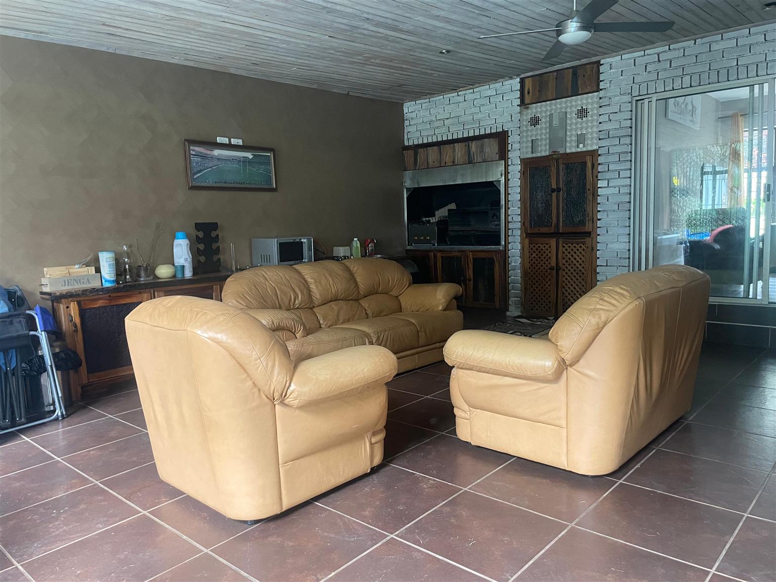 A second spacious lounge with sliding doors that lead to a semi-indoor built-in braai area, which opens out to a sparkling swimming pool—perfect for gatherings in any season.
