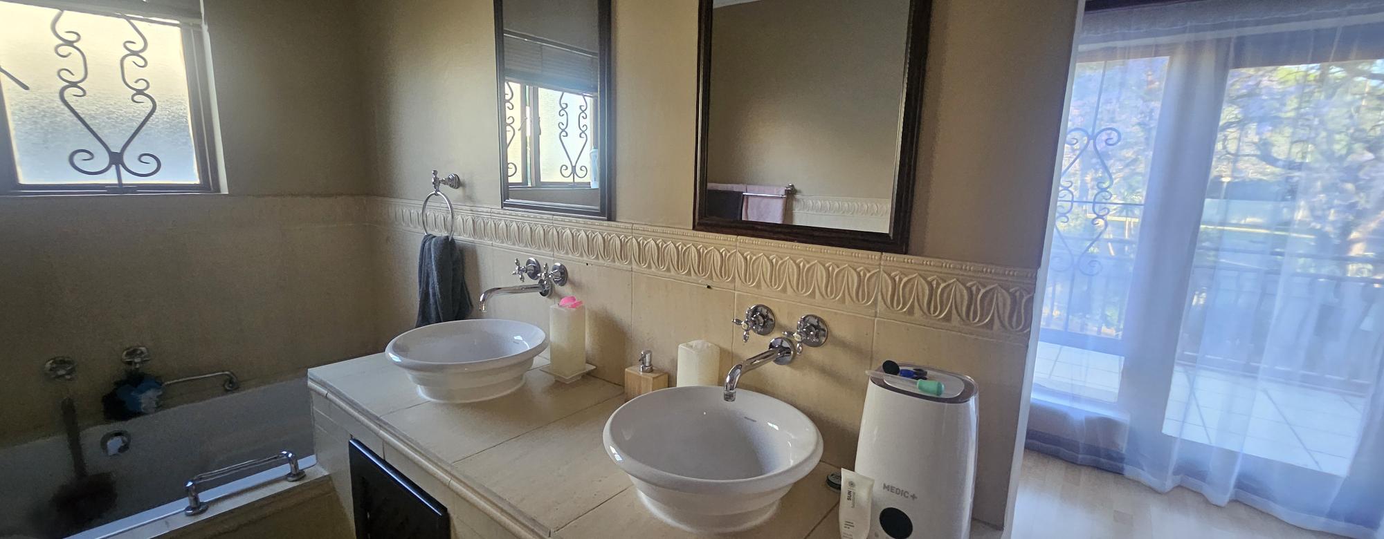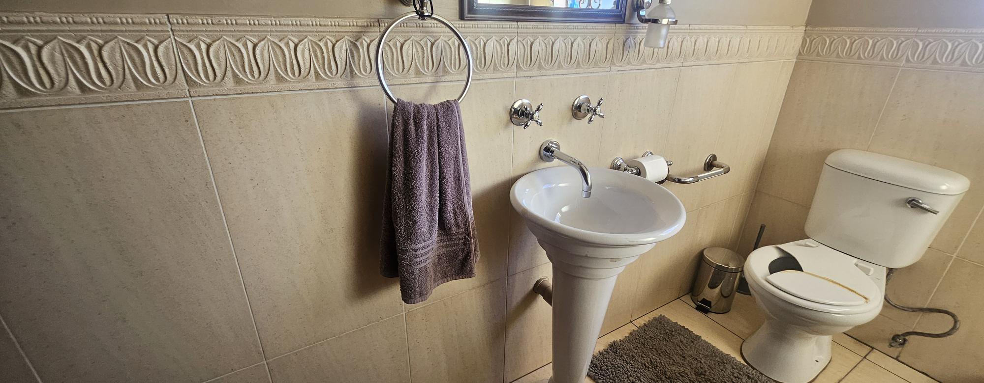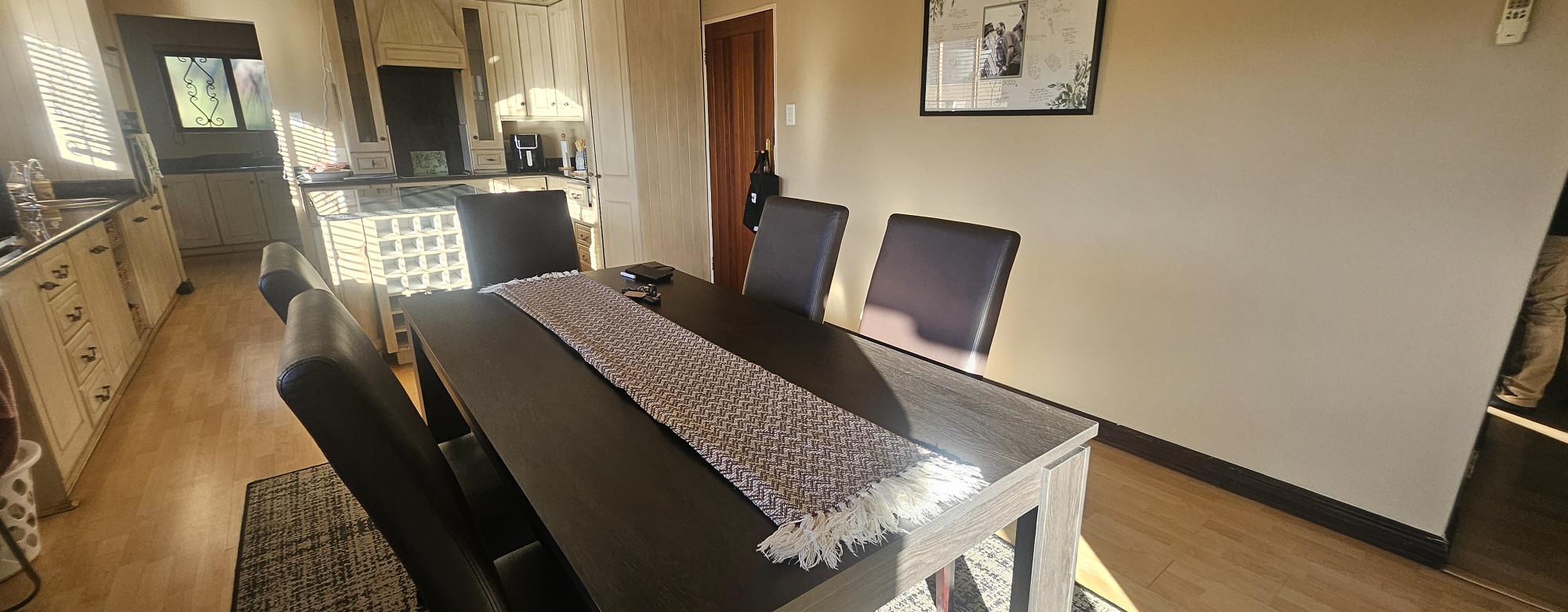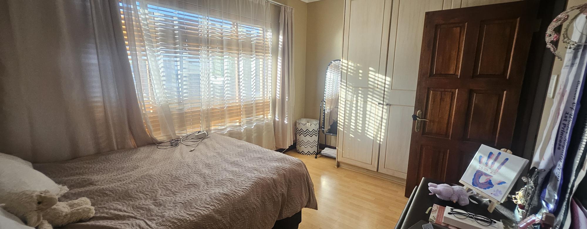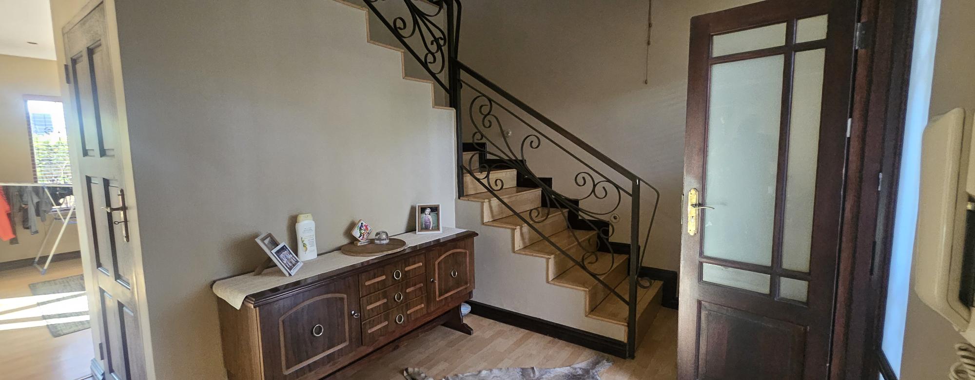 Experience the charm of a Tuscan villa with this exquisite double-storey home, featuring three spacious bedrooms and a versatile study that can easily serve as a fourth bedroom. Enjoy the luxury of two beautifully appointed bathrooms, a guest bathroom, and an open-plan kitchen that flows seamlessly into the dining and lounge areas, perfect for entertaining. Step outside to a generous balcony overlooking a stunning garden, or host gatherings in the dedicated braai room. The elegant staircase adorned with a stunning chandelier adds a touch of sophistication, while practical features like a scullery, double garage, carport, and a water tank ensure convenience and sustainability. This home is a perfect blend of style and functionality, ready to welcome you.