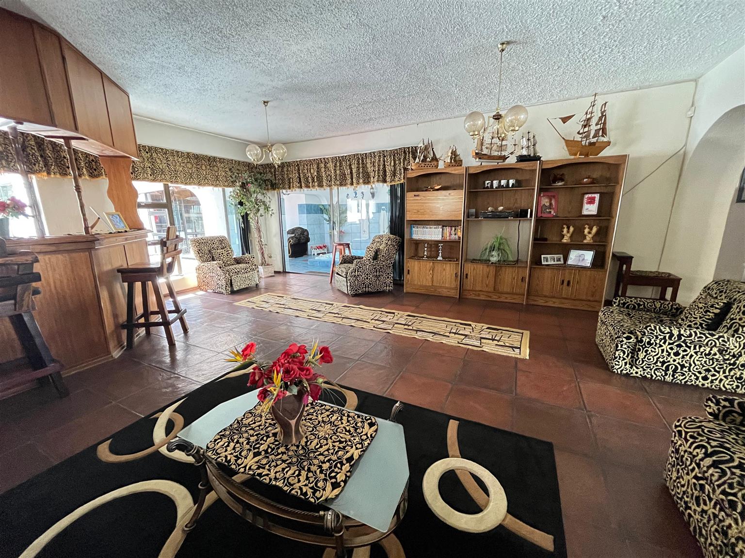 -A fully furnished entertainment area with a built-in bar, jacuzzi, kitchenette and a beautiful view of the massive pool.