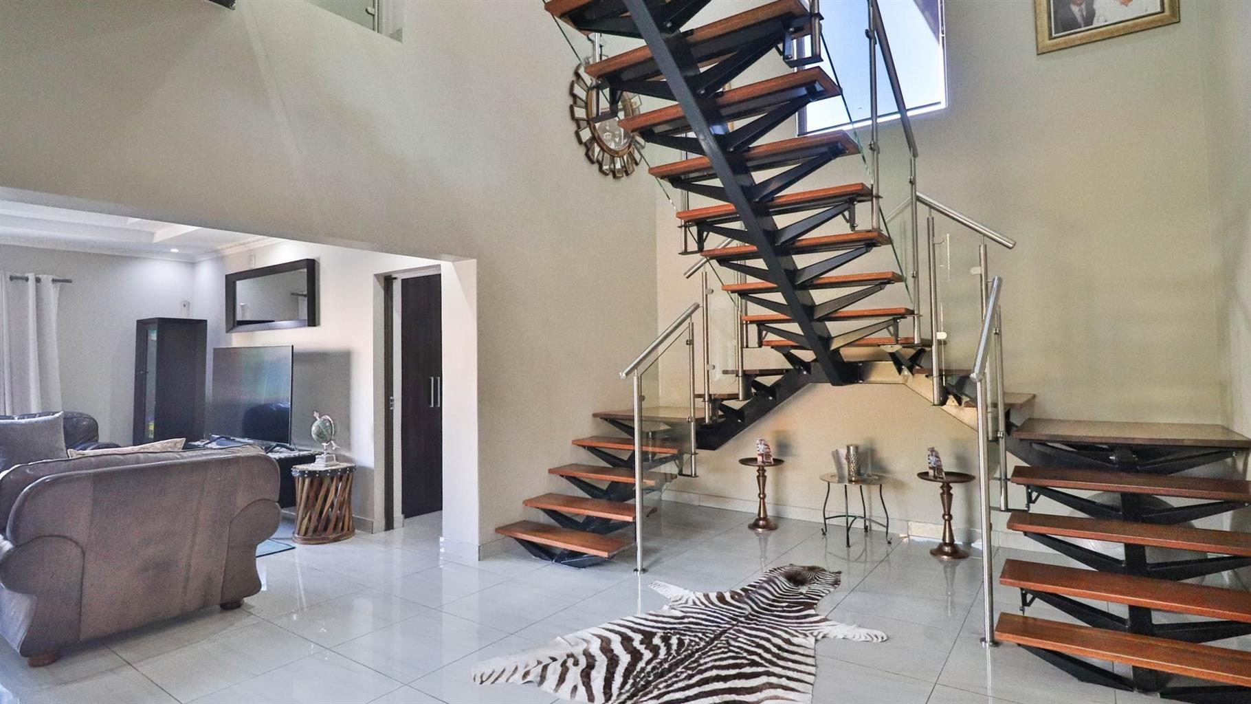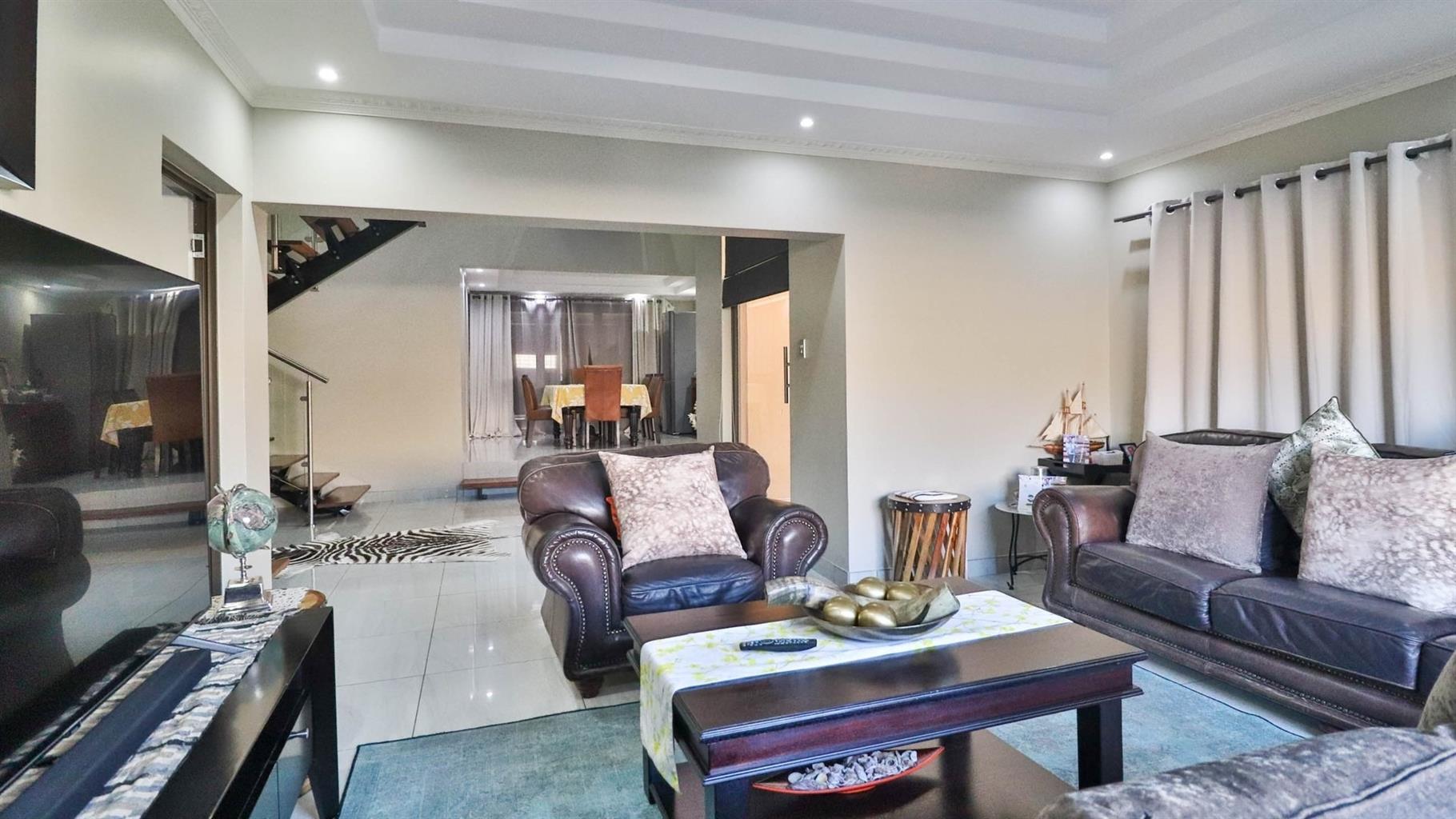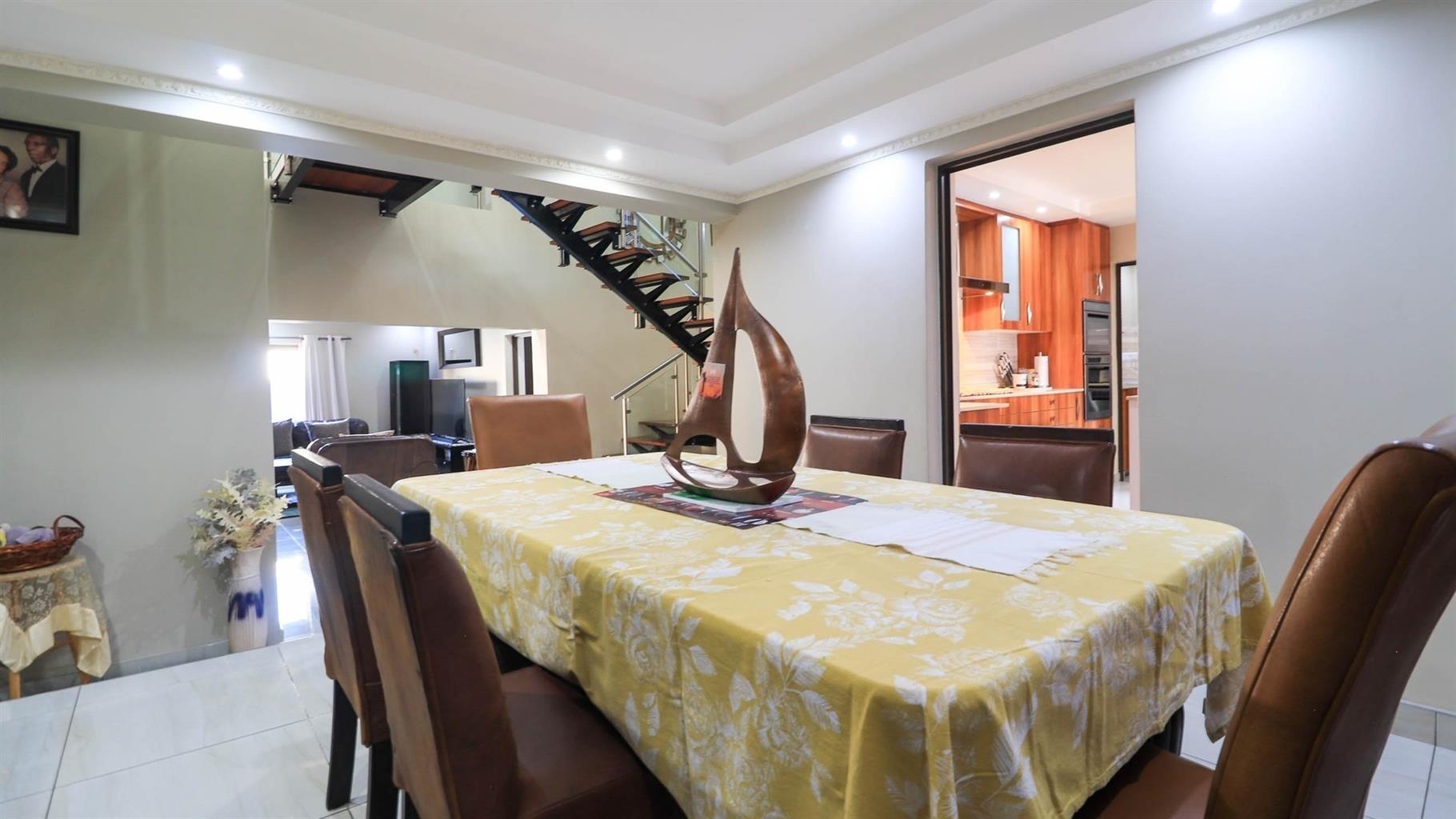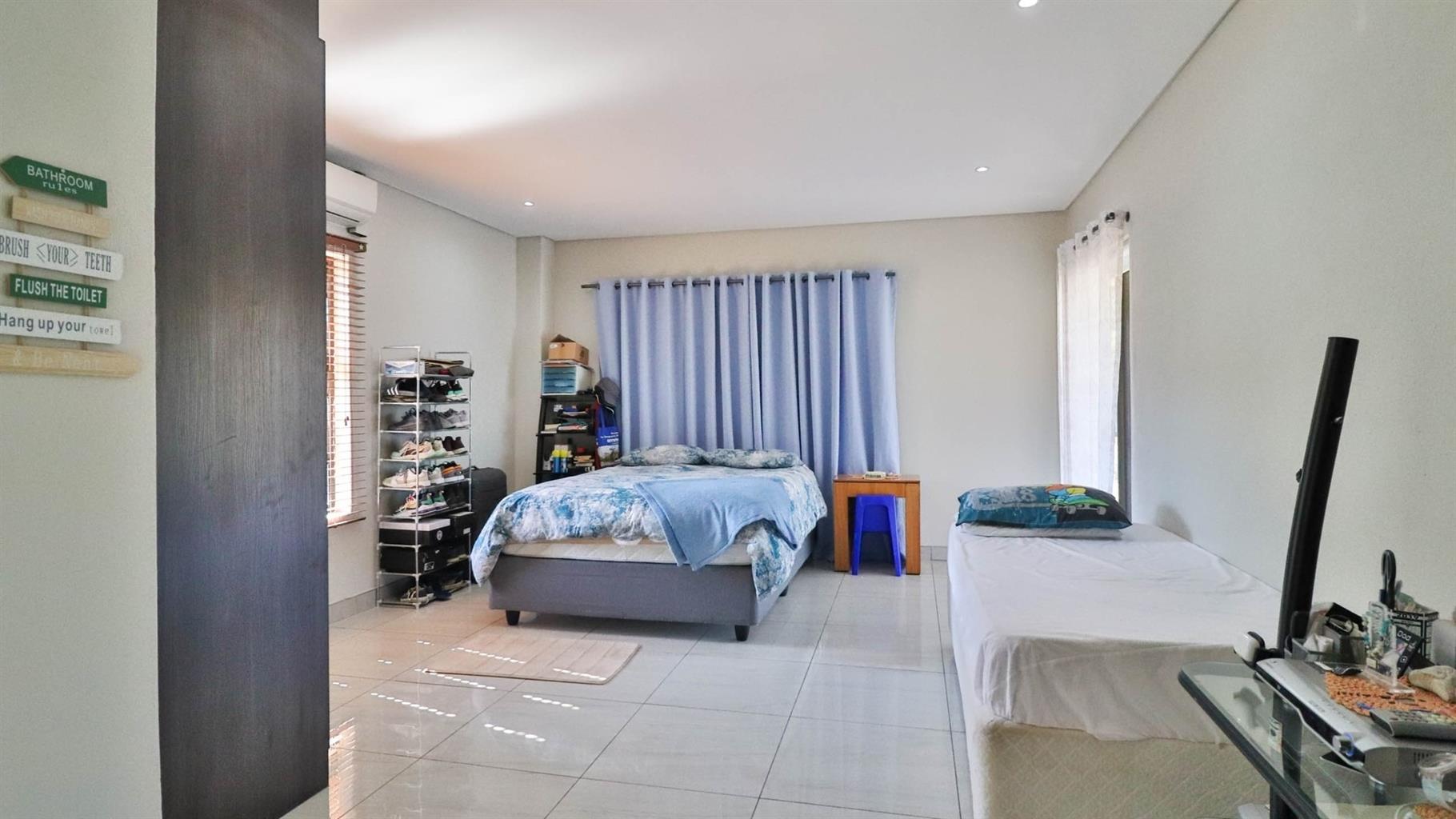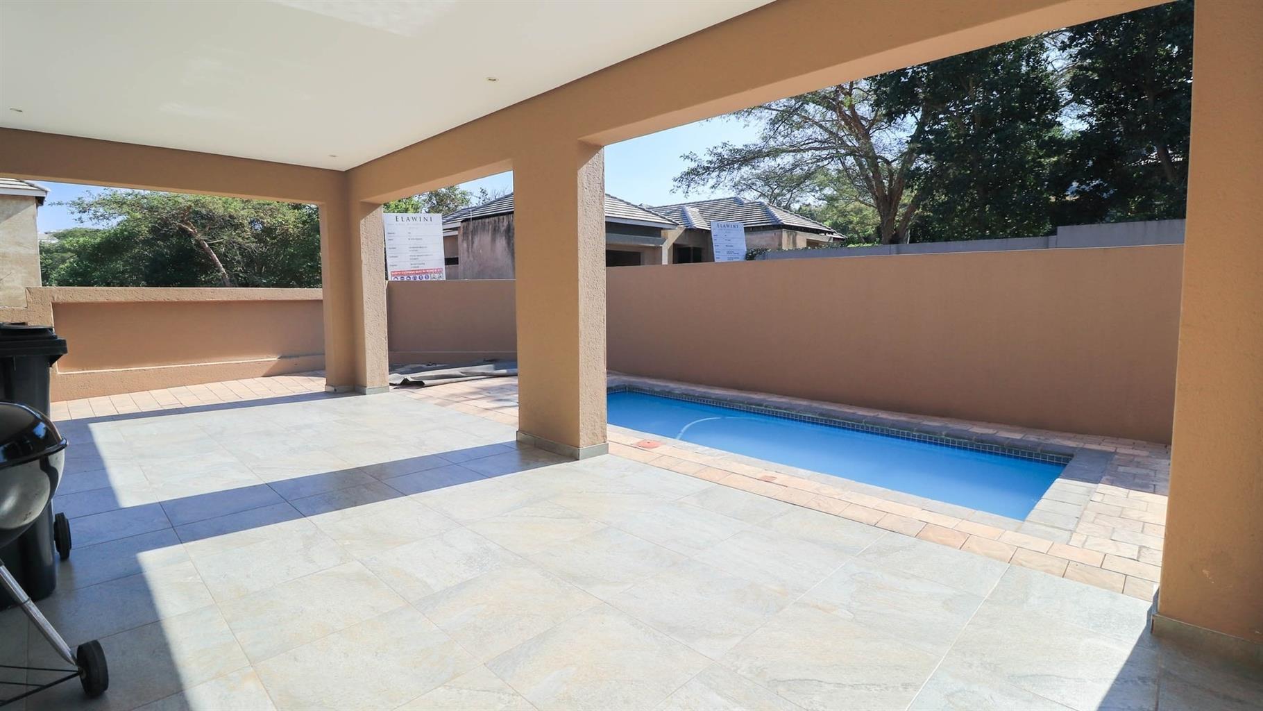 This magnificent residence in a gated Security Estate in Mbombela, boasts an array of features that cater for comfort and luxury. There are five bedrooms, each one equipped with built in cupboards and en-suite bathrooms, ensuring privacy and convenience. It has a functional kitchen which is a chef's delight, with ample working space, abundant storage with lots of cupboards and both an electric and gas stove for versatile cooking options. The living spaces includes two lounges and two dining rooms, perfect for entertaining guests or enjoying family time. Tiled floors throughout the house for easy maintenance and three air conditioners keeps the environment comfortable year -round,