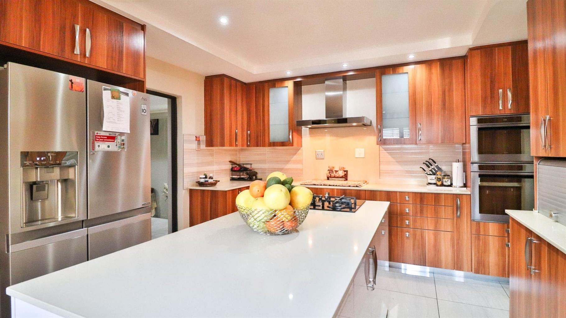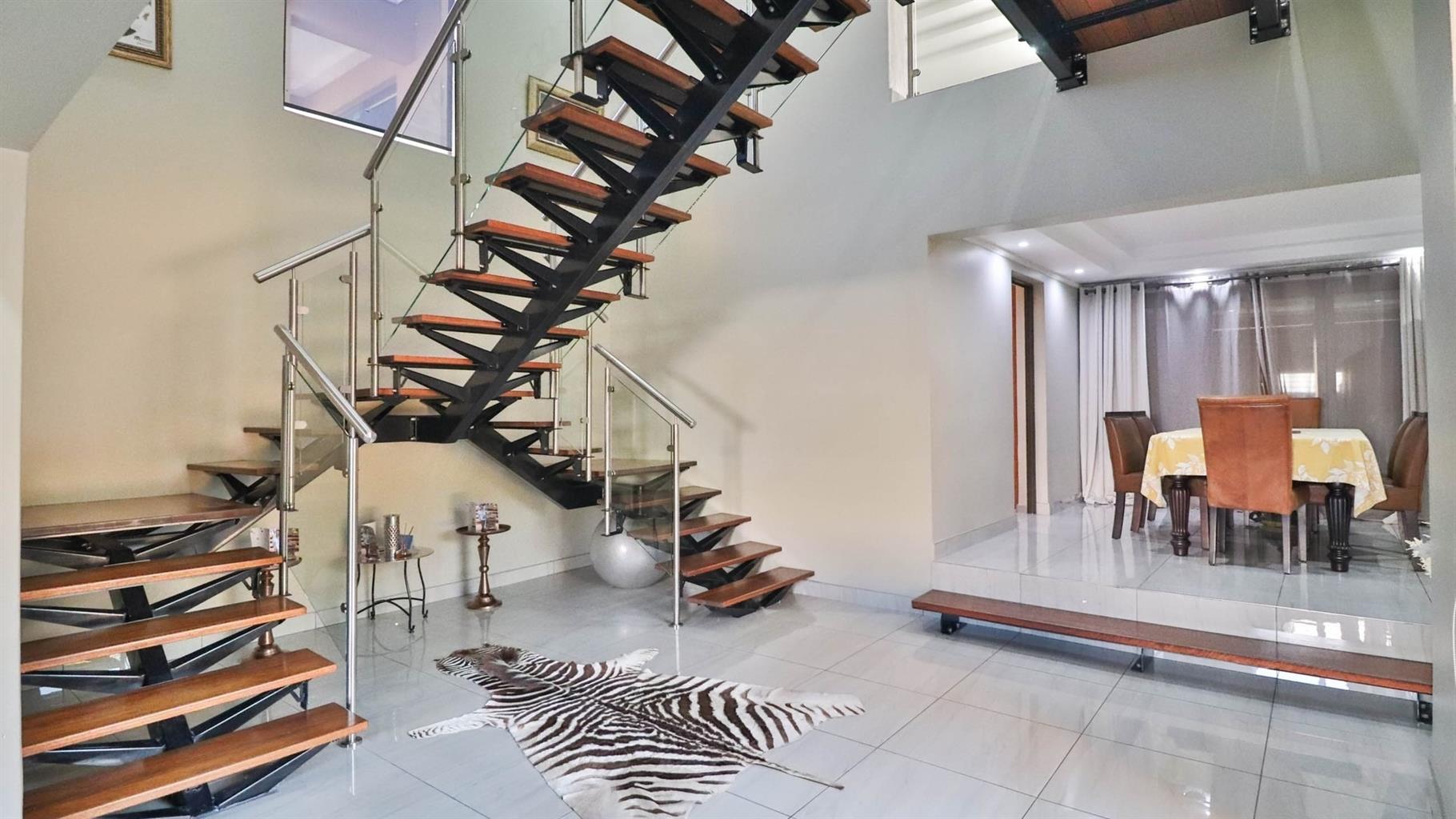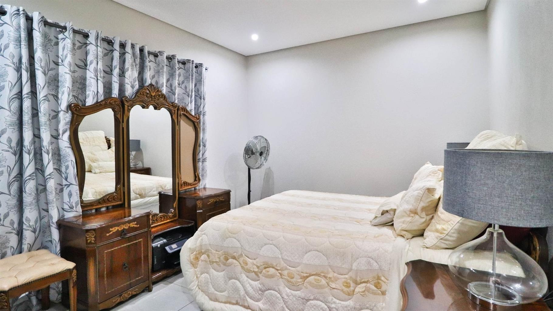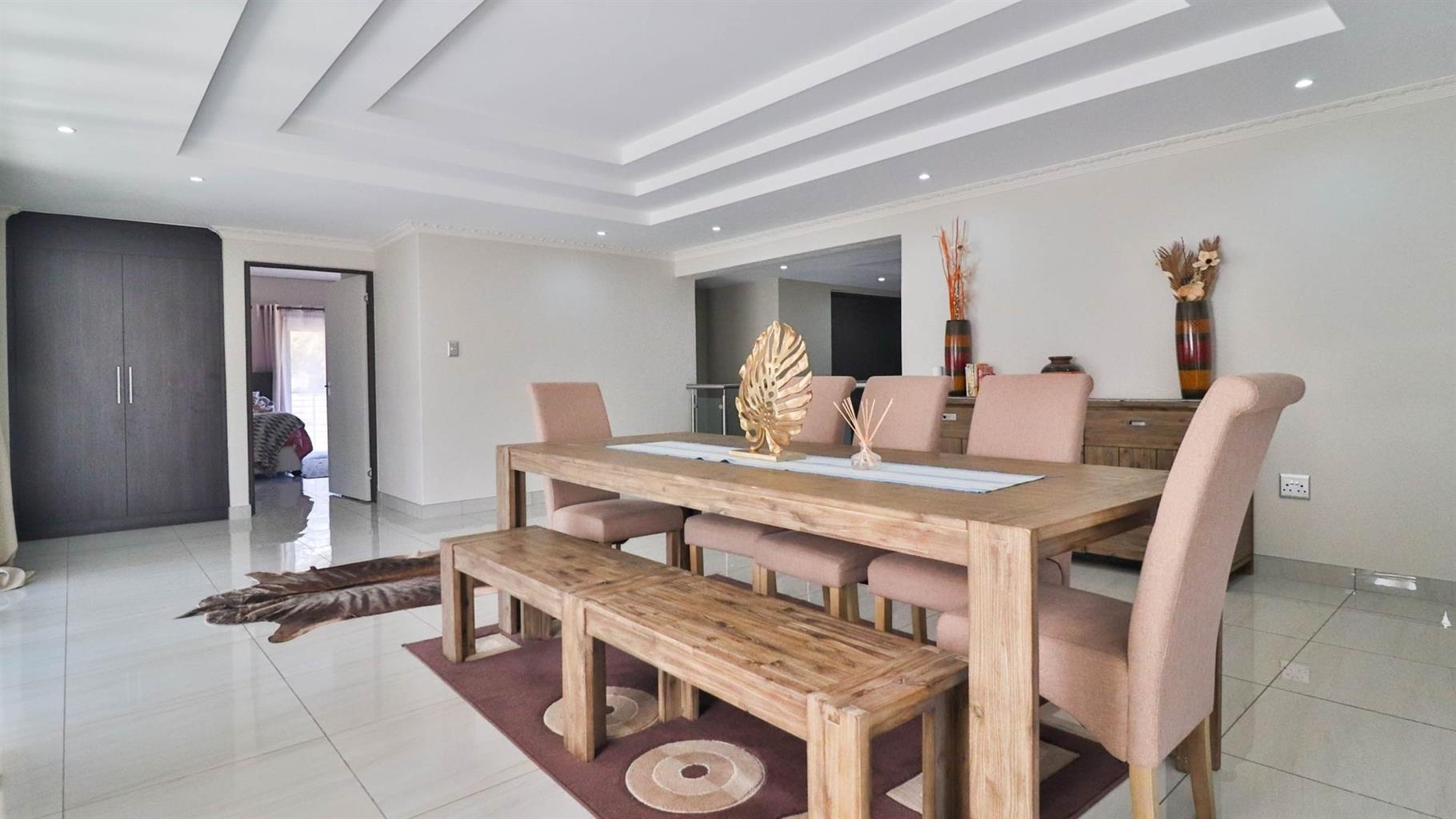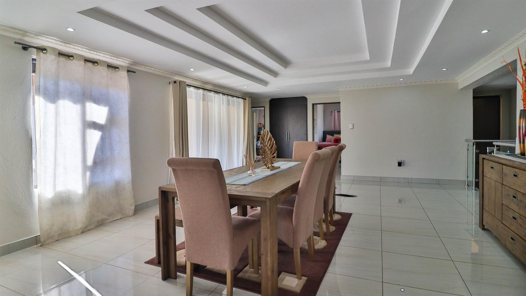 This magnificent residence in a gated Security Estate in Mbombela, boasts an array of features that cater for comfort and luxury. There are five bedrooms, each one equipped with built in cupboards and en-suite bathrooms, ensuring privacy and convenience. It has a functional kitchen which is a chef's delight, with ample working space, abundant storage with lots of cupboards and both an electric and gas stove for versatile cooking options. The living spaces includes two lounges and two dining rooms, perfect for entertaining guests or enjoying family time. Tiled floors throughout the house for easy maintenance and three air conditioners keeps the environment comfortable year -round,