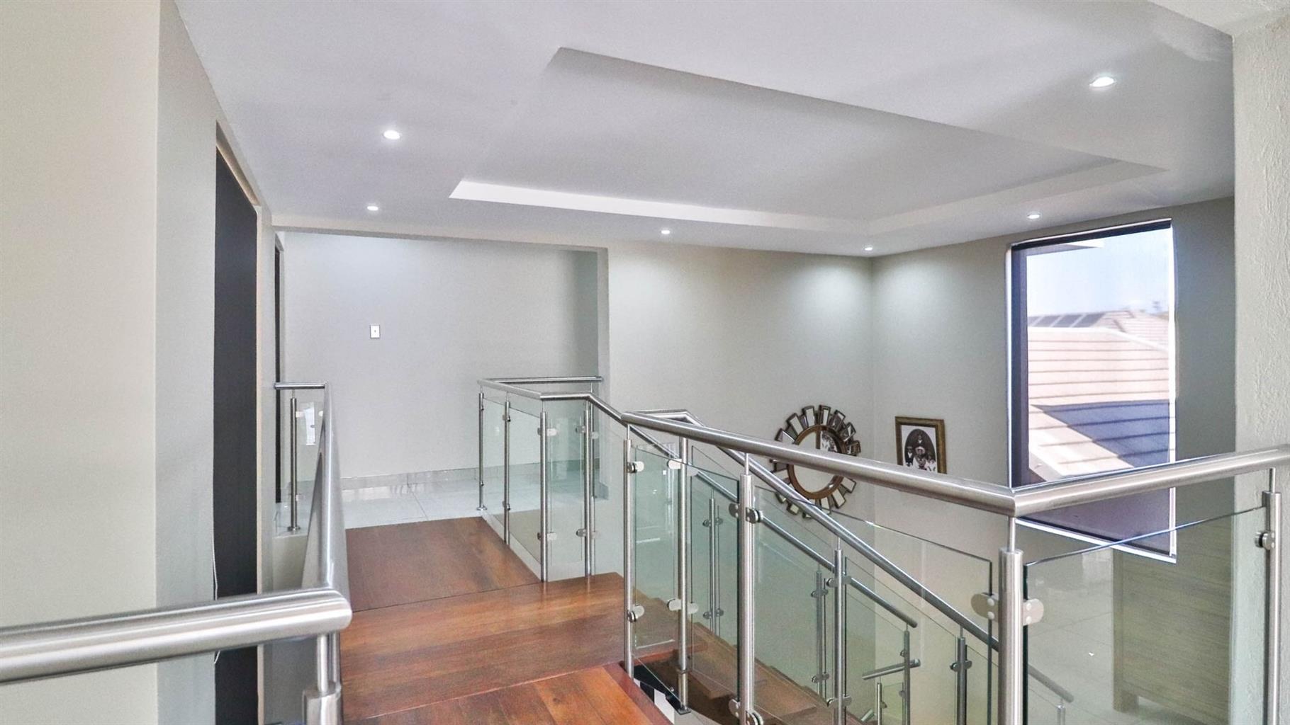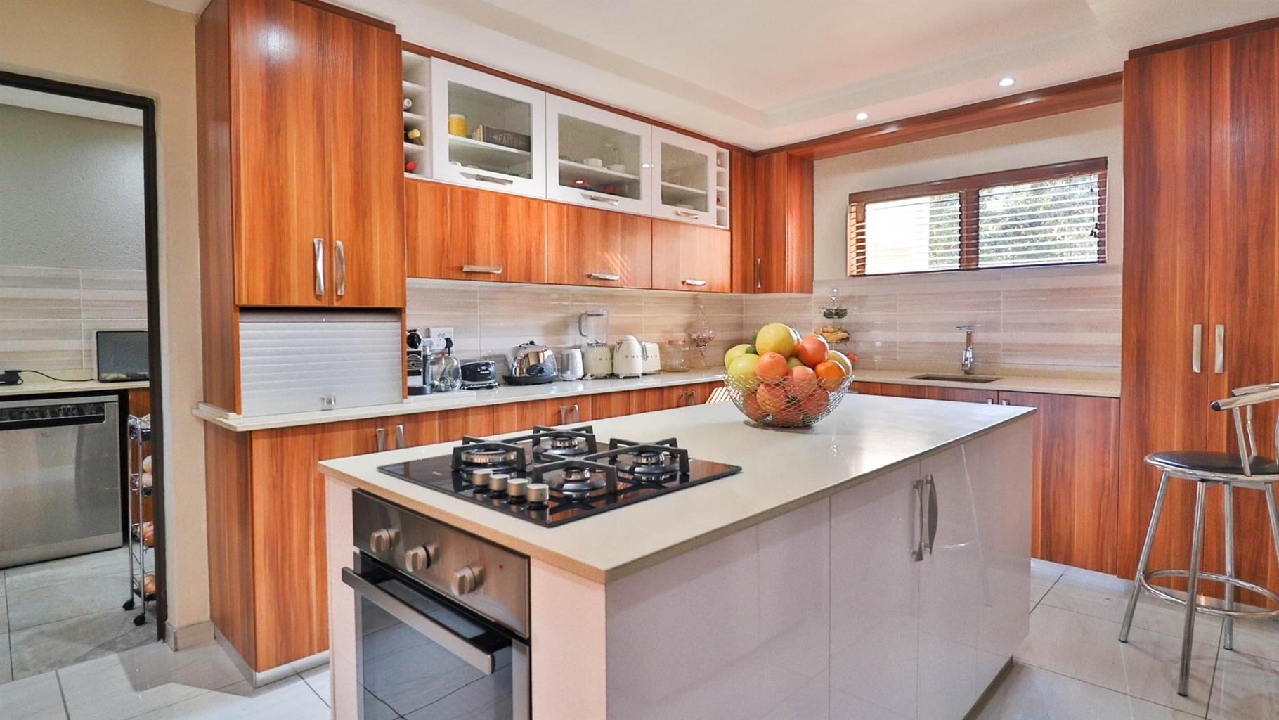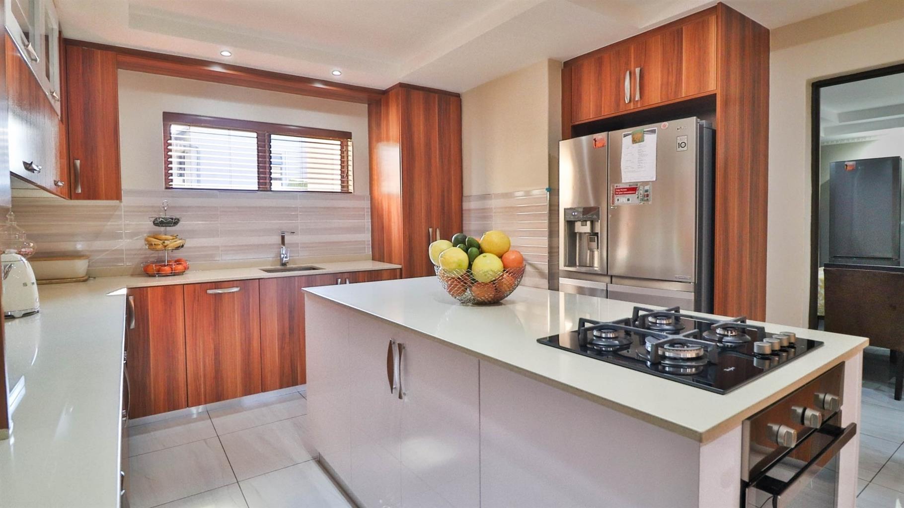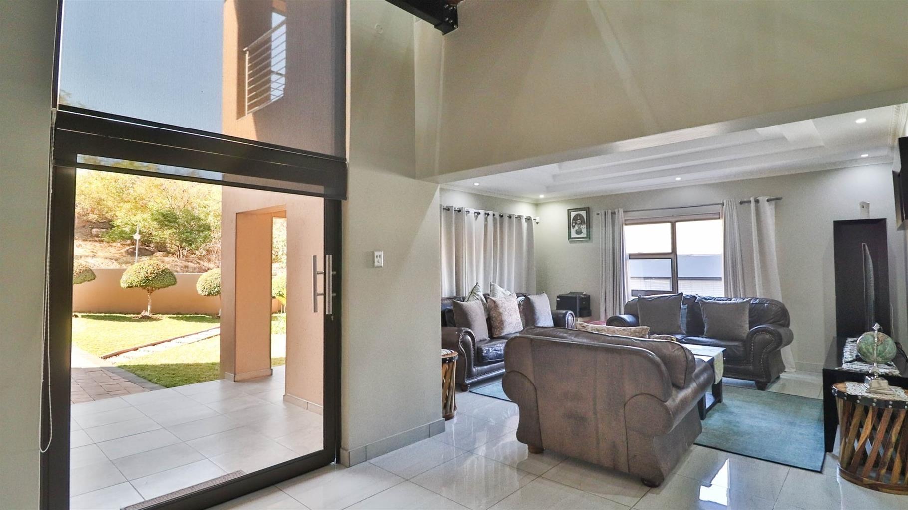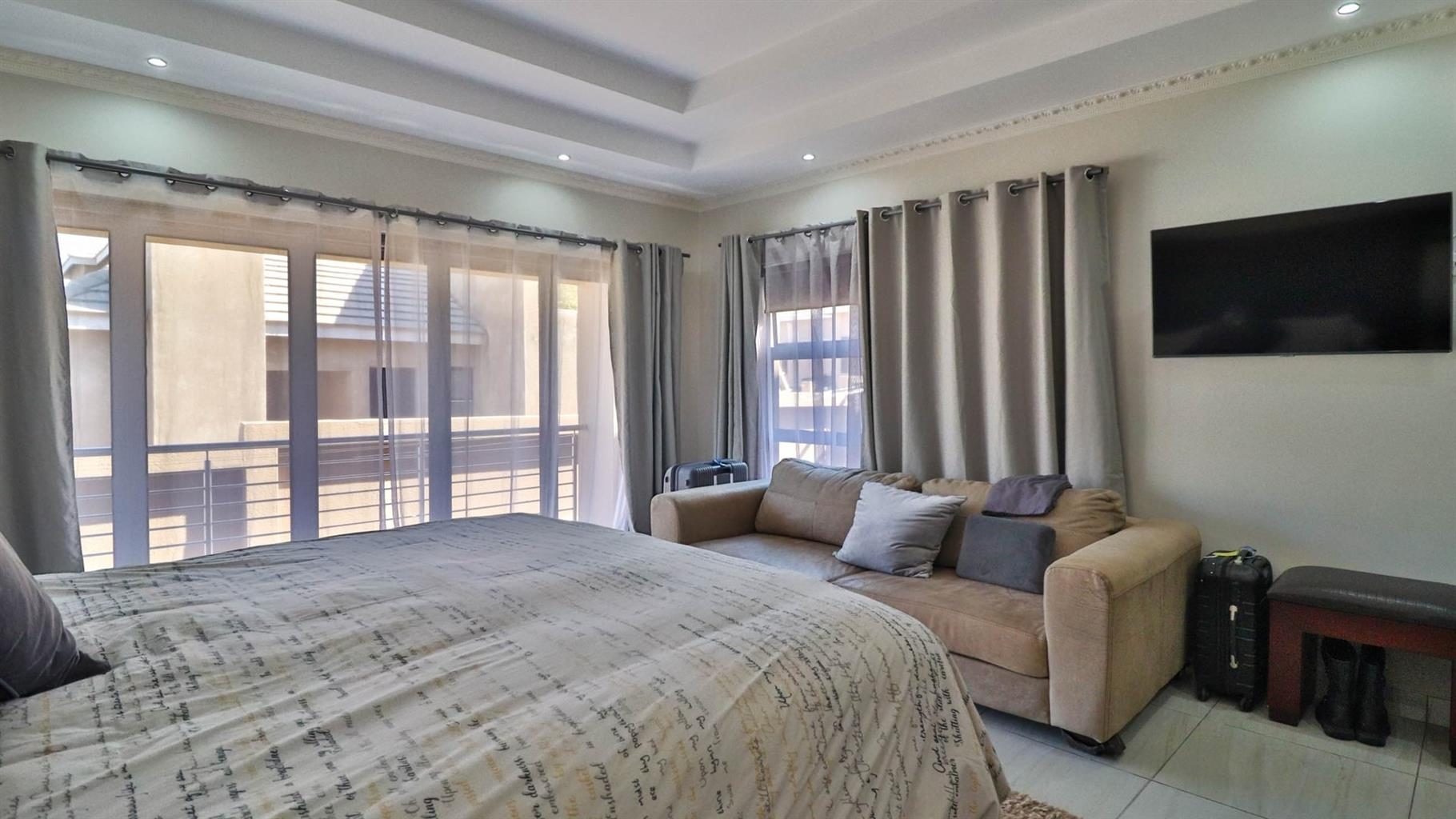 This magnificent residence in a gated Security Estate in Mbombela, boasts an array of features that cater for comfort and luxury. There are five bedrooms, each one equipped with built in cupboards and en-suite bathrooms, ensuring privacy and convenience. It has a functional kitchen which is a chef's delight, with ample working space, abundant storage with lots of cupboards and both an electric and gas stove for versatile cooking options. The living spaces includes two lounges and two dining rooms, perfect for entertaining guests or enjoying family time. Tiled floors throughout the house for easy maintenance and three air conditioners keeps the environment comfortable year -round,