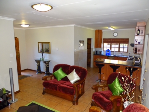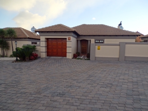 Safe and Secure! Cosy two bedroom townhouse in a security complex with its own garden. The lounge, dining room and kitchen is an open plan area with tiled floors, opening up to a private patio with built in braai. The kitchen is fitted with cherry wood melamine cupboards and has a separate scullery with space for three large appliances. Both bedrooms are carpeted for warmth. The main bedroom has a full en-suite bathroom with walk through closets. The guest bathroom is fitted with a shower. In the passage is a linen closet. The garden has automated irrigation and is low maintenance. From the single garage you can walk into your home. The unit is secured with an alarm with armed response and an electric fence is installed around the complex. Water to the value of R500 is included in the rental, and the house is provided with prepaid electricity for your own account. A satellite dish is already fitted and the unit is fiber to the home ready (internet for tenant's account).