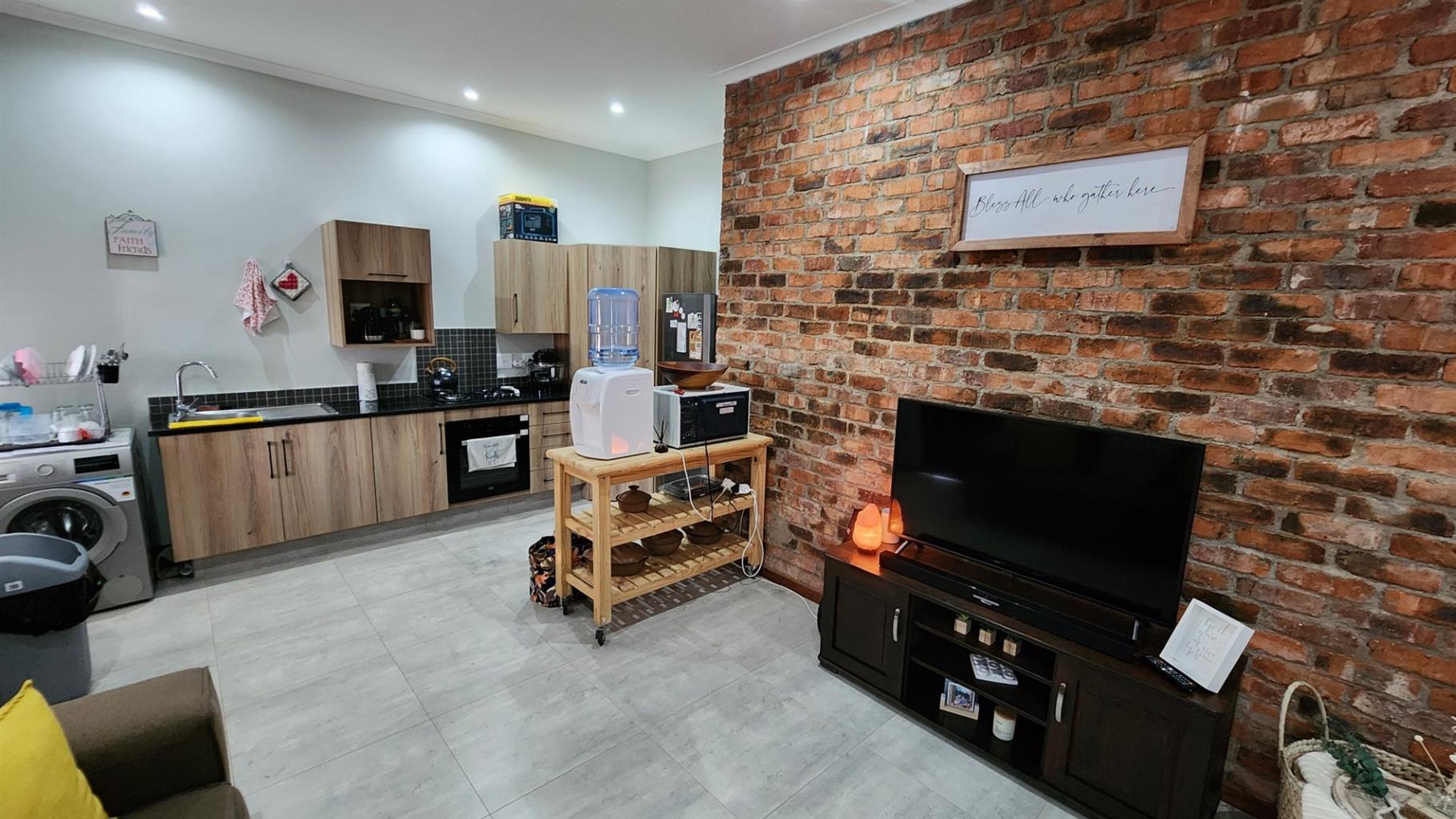 Our unit offers an open plan living area that features high ceilings, a face brick focus wall in the lounge and are tiled throughout. The modern kitchen is well planned and comes with gas stove, granite tops and ample cupboards. Bedrooms are spacious and have built-in cupboards, the bathroom has a shower, basin, and toilet. All units are equipped with gas geysers. There is a lovely patio with a built-in braai overlooking well-kept gardens. 1 Covered parking bay.
