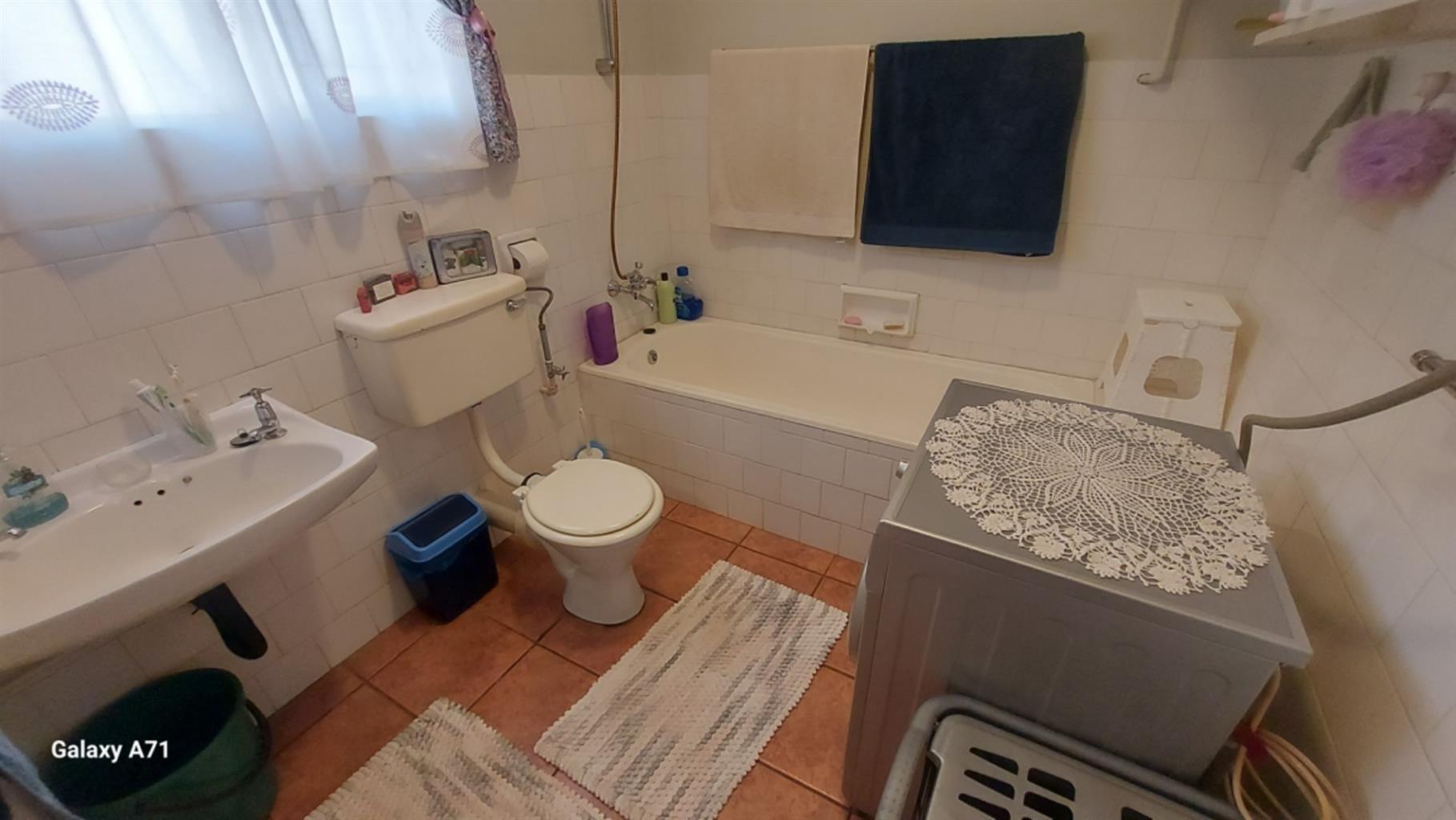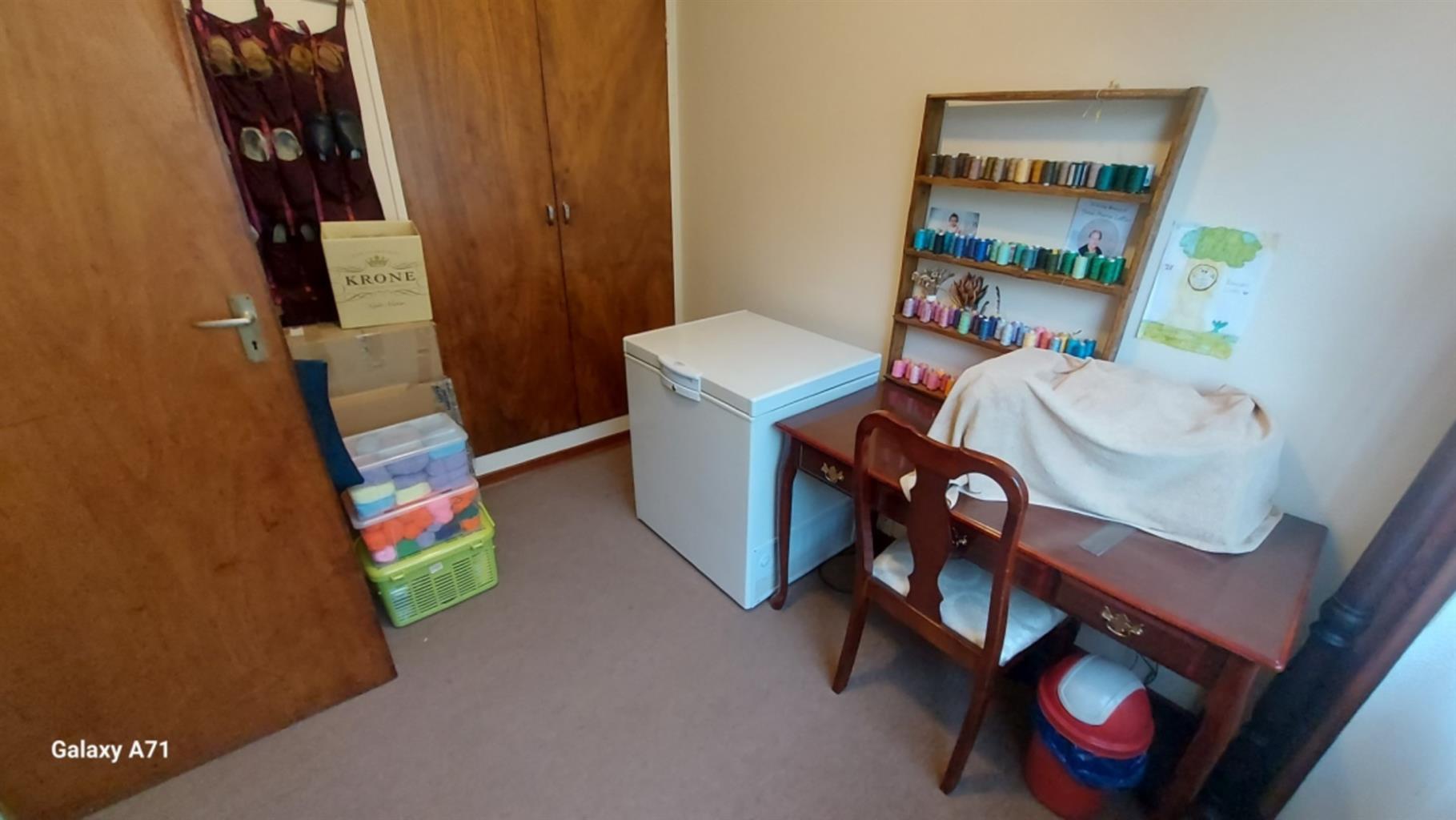 The bedroom has carpets, built in cupboards and also a ceiling fan. Attached to the main bedroom is a place that could be used as a sewing room or even used as a baby room, with a large window that has a view of the veranda.