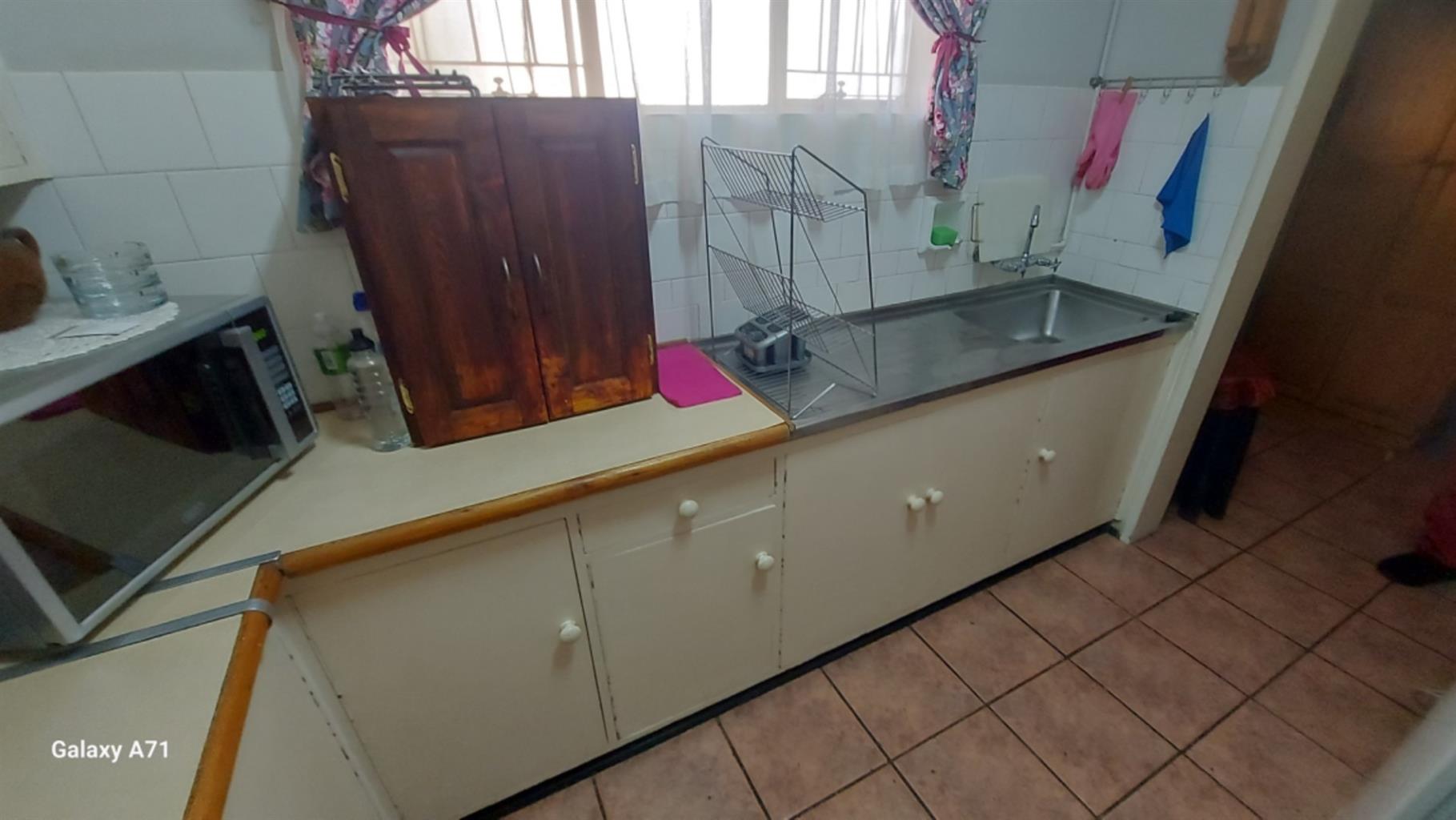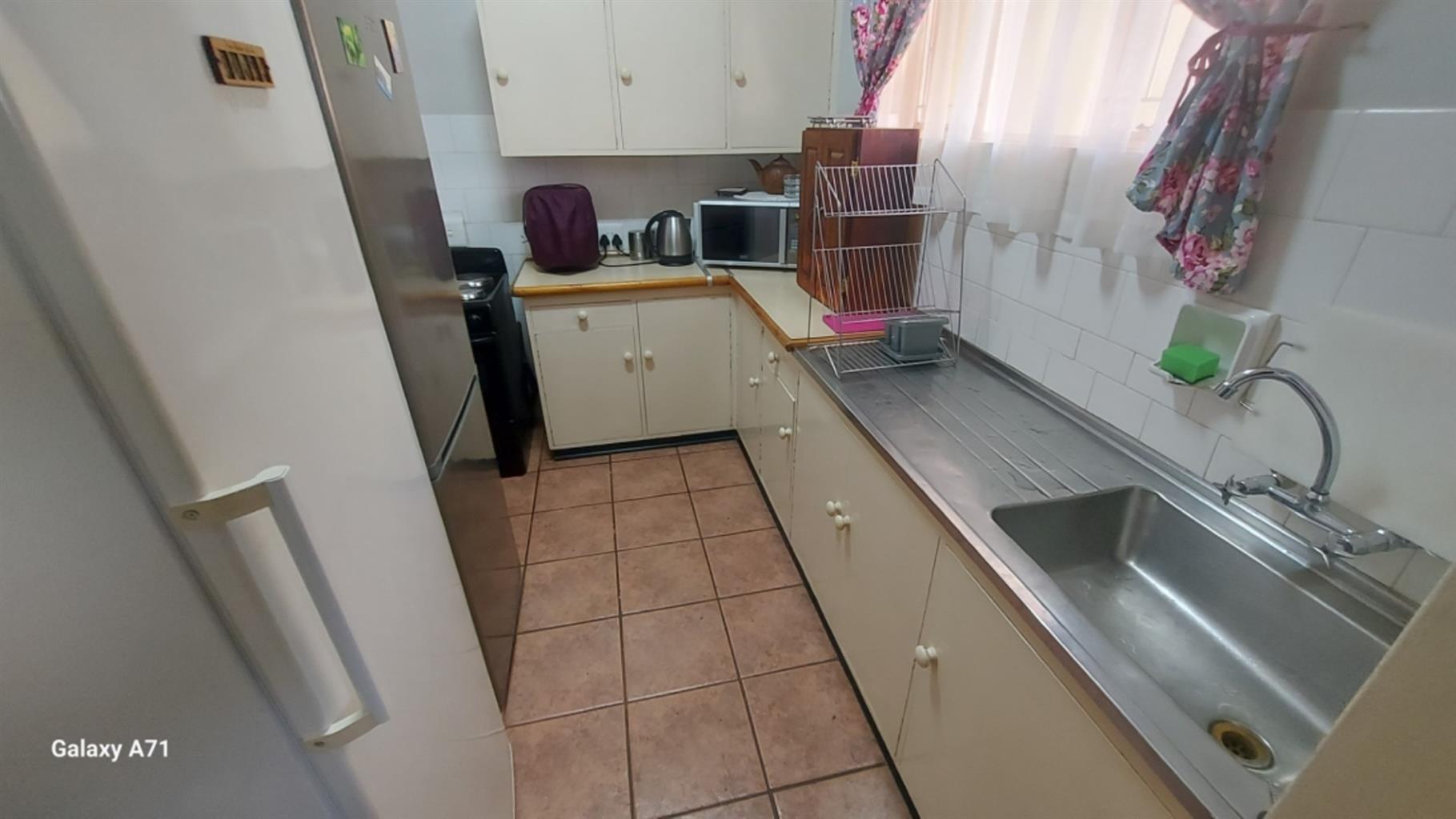 The kitchen has ample working tops and built in cupboards. There is a single basin scullery and place for a dishwasher. The floors are neatly tiled. The stove and oven is electric.