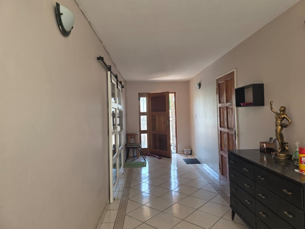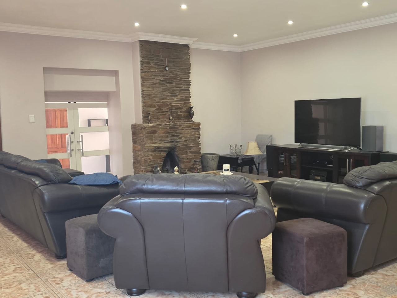 6 bedrooms, 4 bathrooms, lounge, TV room, kitchen, dining room, bar area, garage for 6 cars, pool, outside area ideal for entertaining and two bedrooms cottage at the back that needs attention.