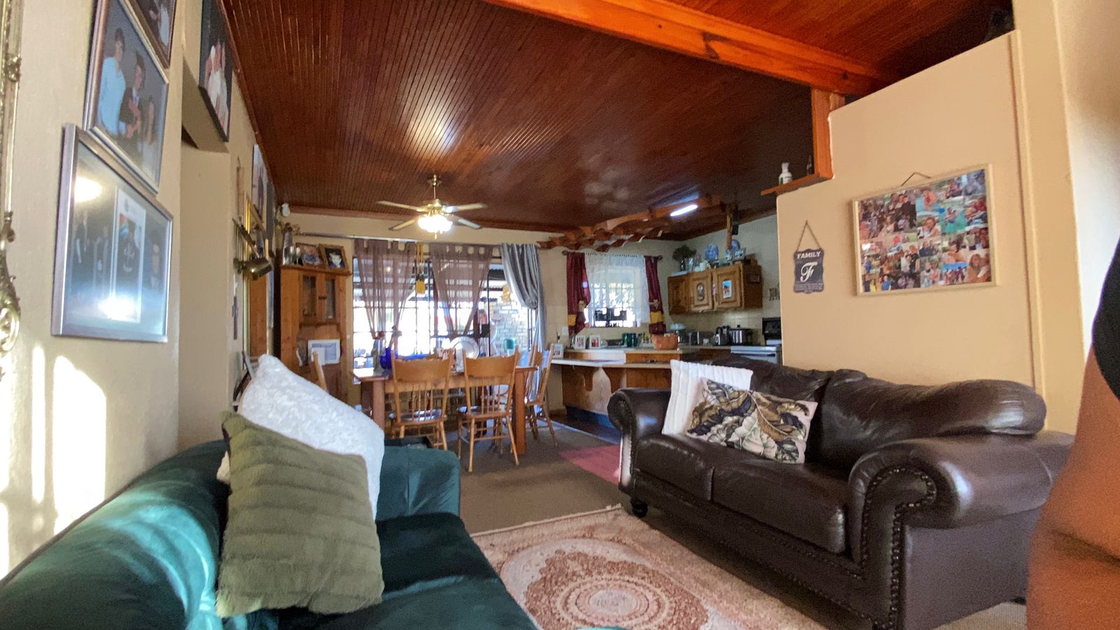 and family gatherings. The adjacent kitchen is well-appointed and ready for your culinary