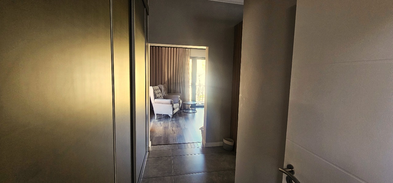 Upstairs, a cozy pajama lounge offers a tranquil retreat, while the main bedroom impresses with a spacious walk-in closet, ensuite bathroom, and a private balcony. Additional bedrooms also feature balconies, with built-in cupboards throughout the home providing ample storage.