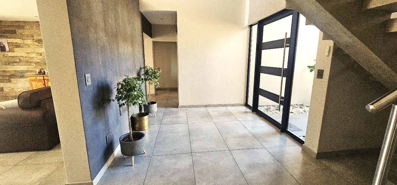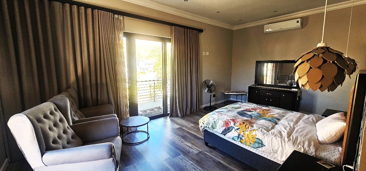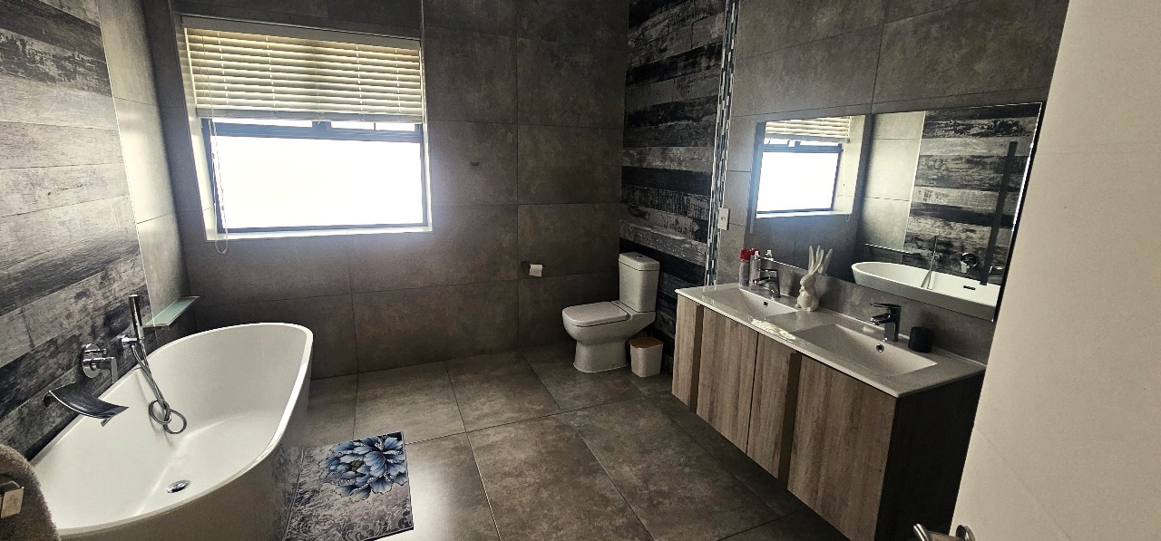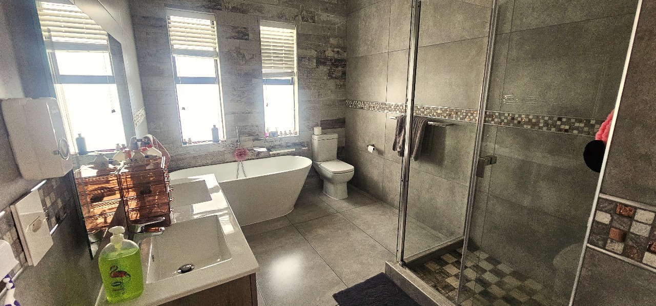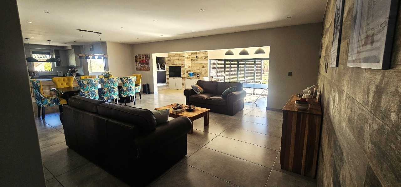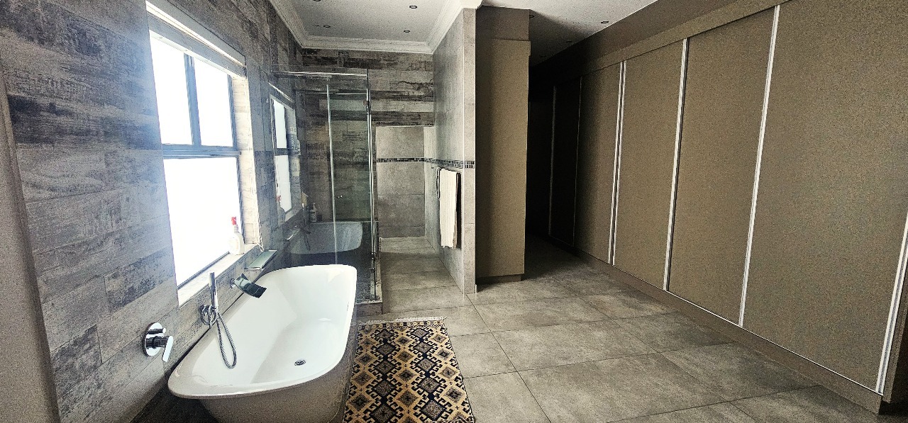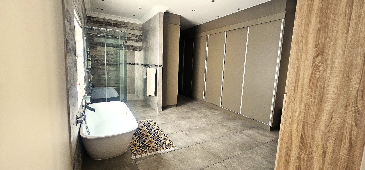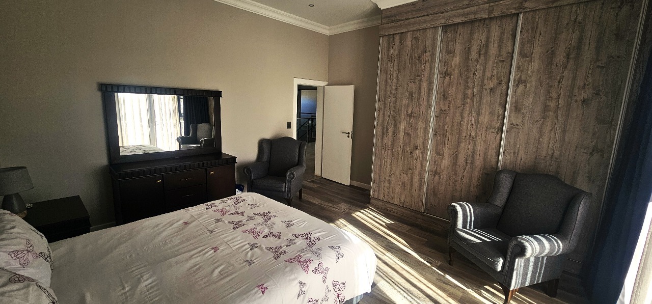 The ground floor features two lounges, one complete with a built-in braai, seamlessly connecting to the patio and garden—perfect for year-round entertaining. A dedicated family/TV room and dining area offer versatile living options, while the study provides a quiet space for work or reading.