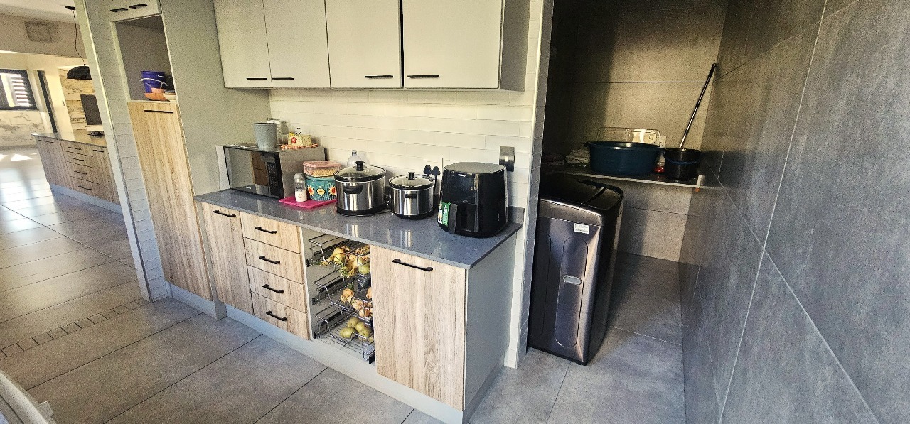 The modern kitchen is well-equipped, complemented by a scullery, pantry, and laundry area, ensuring both practicality and style.