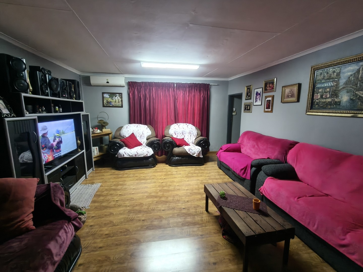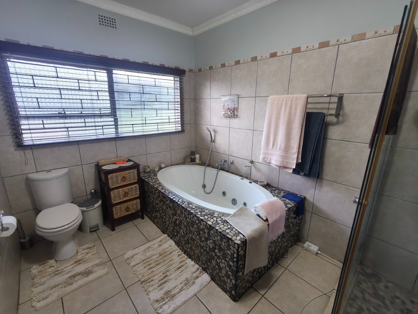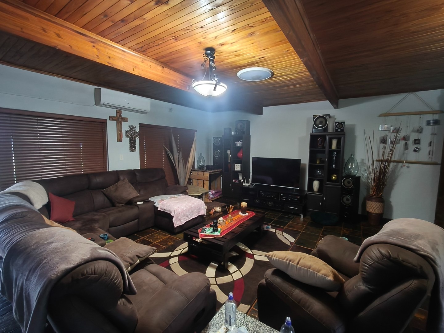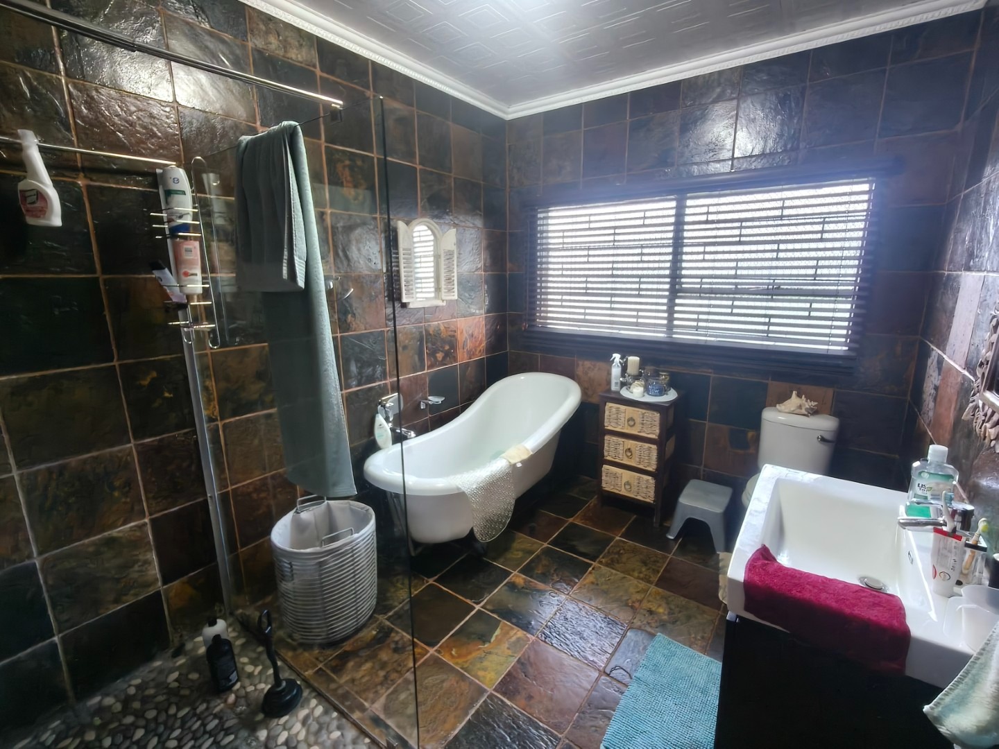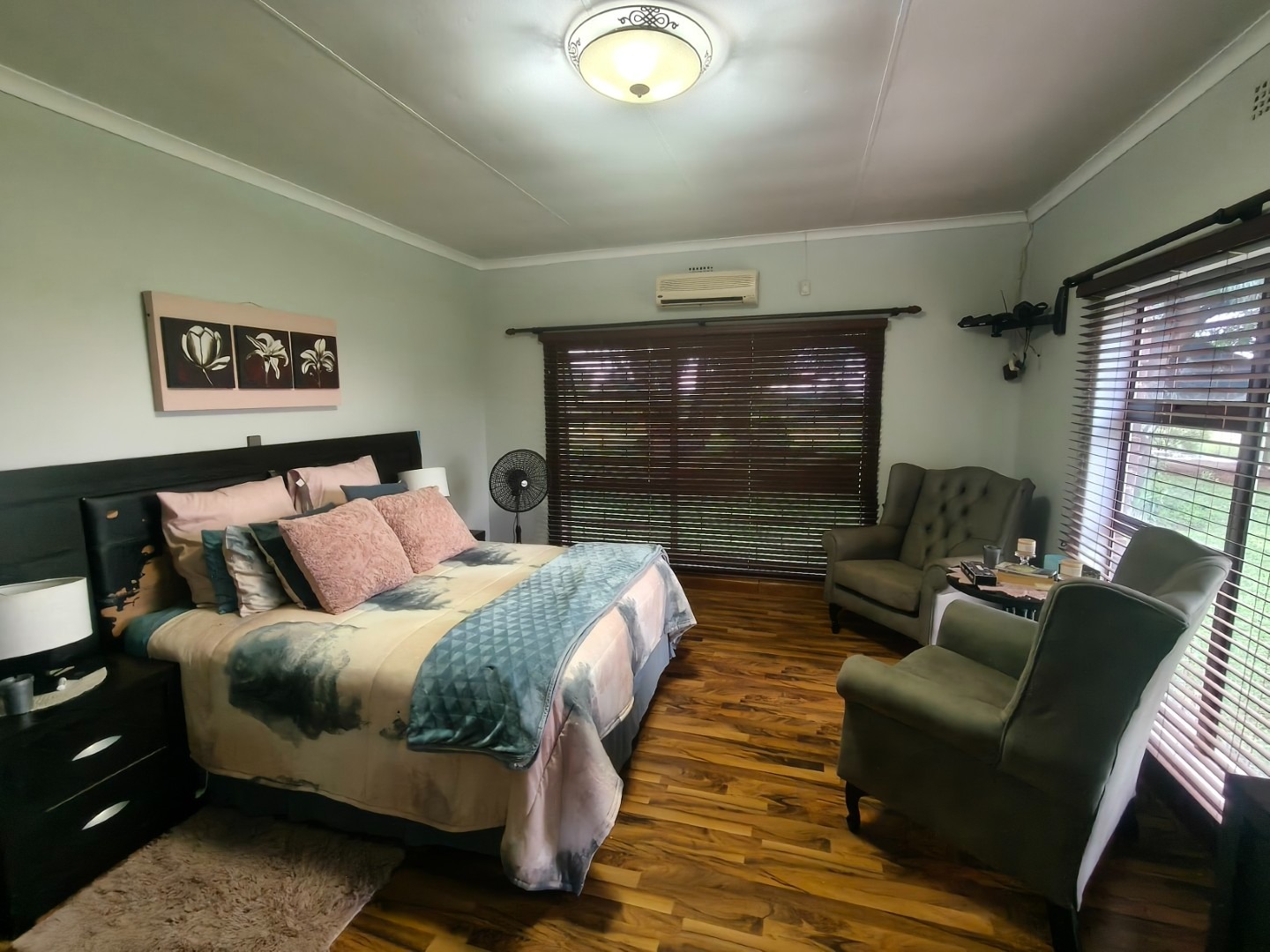 Enjoy the outdoors with a beautiful, low-maintenance garden, fruit trees, swimming pool, thatched Lapa with built-in braai, and separate boma area. Water is plentiful with 2 strong boreholes (12,000 & 6,000 L/h), 3 x 5000L tanks on a 9m stand, and solar (16KVA) with Eskom backup. Additional features include electric fencing around the main home, 3 garages, carports for 4 cars, ROM system in kitchen, and 5 staff units with water.