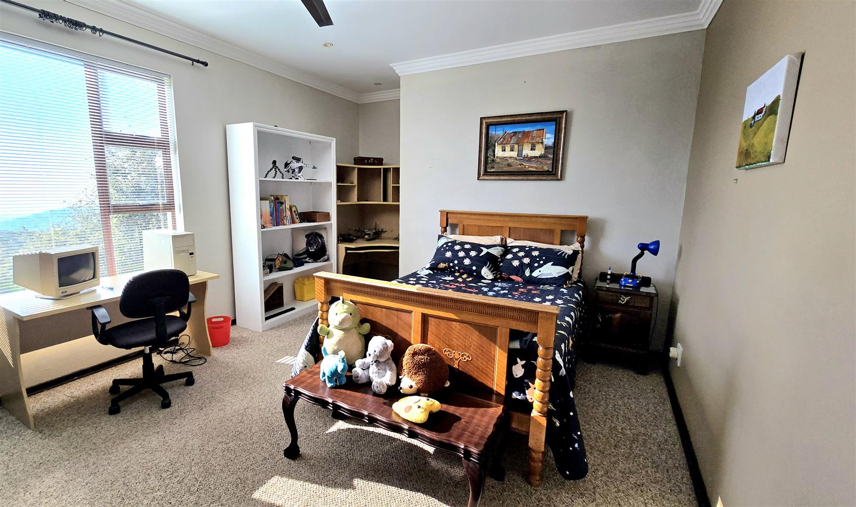 The home features a spacious layout designed for easy living, with the main bedroom thoughtfully located on the ground floor—ideal for accessibility and privacy. Upstairs, additional bedrooms offer generous space for family or guests, all filled with natural light and scenic vistas.