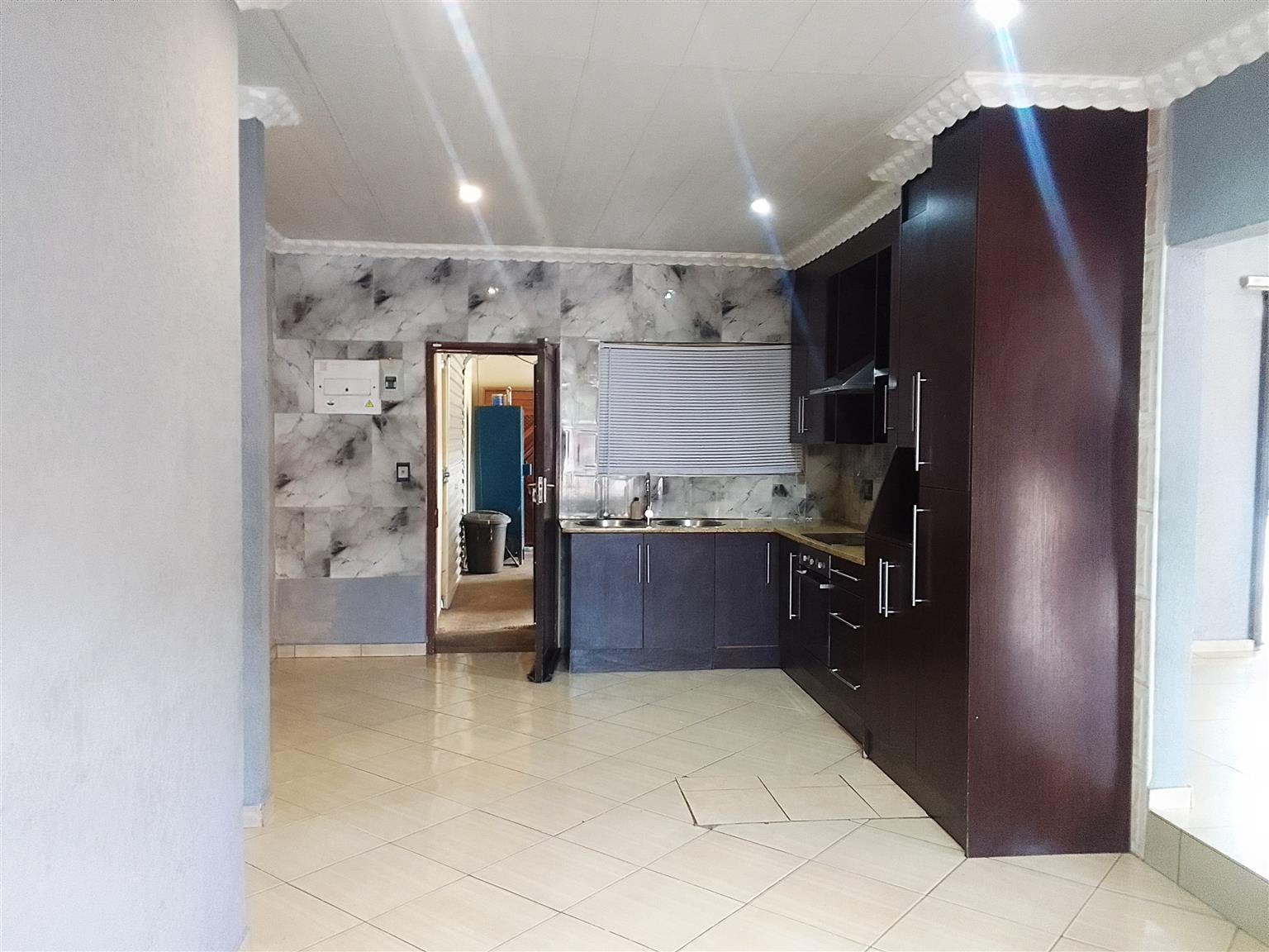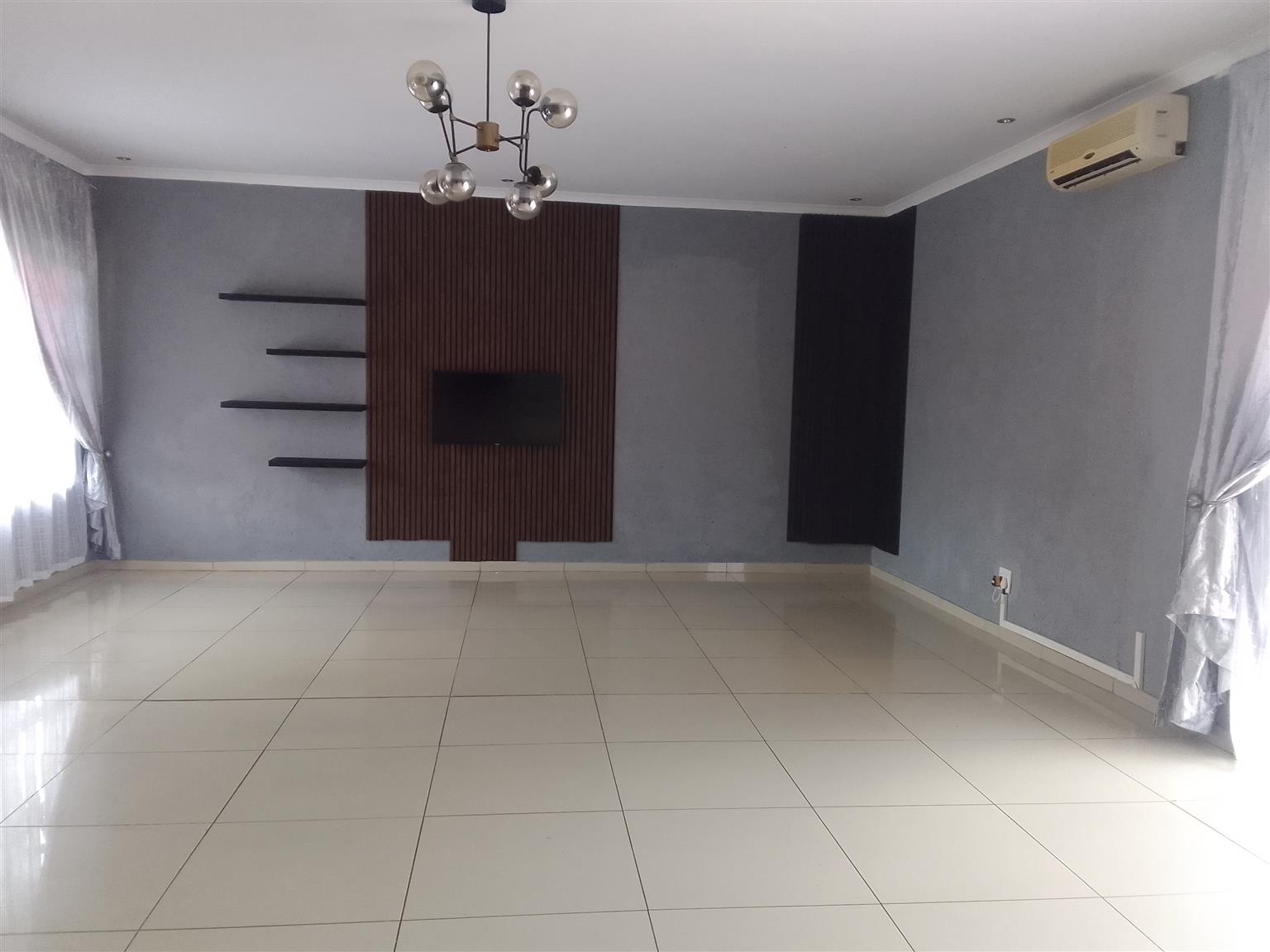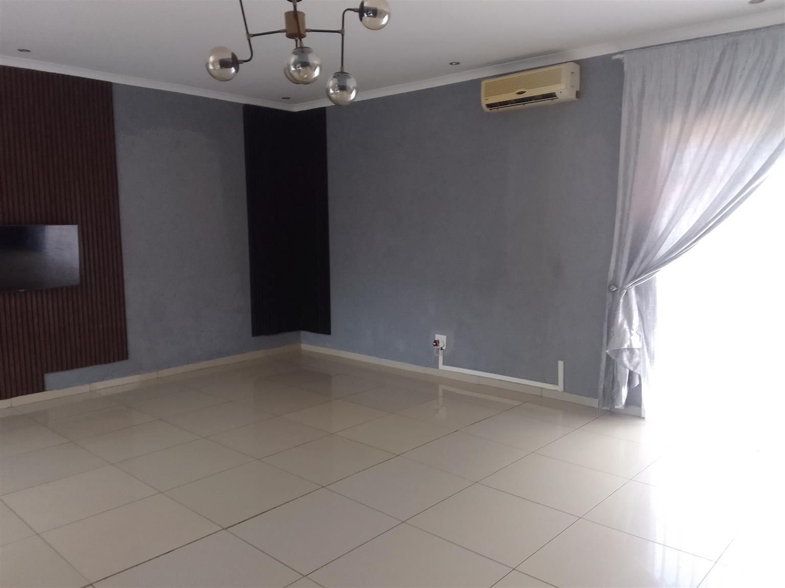 Inside, the home is tiled throughout with modern, shining finishes. The kitchen and all fixtures are stylish, contemporary, and designed for easy living. The super-sized double lounge features large windows that flood the home with natural light, creating a warm and inviting atmosphere. And yes—there are air-conditioners to keep the home cool and comfortable.