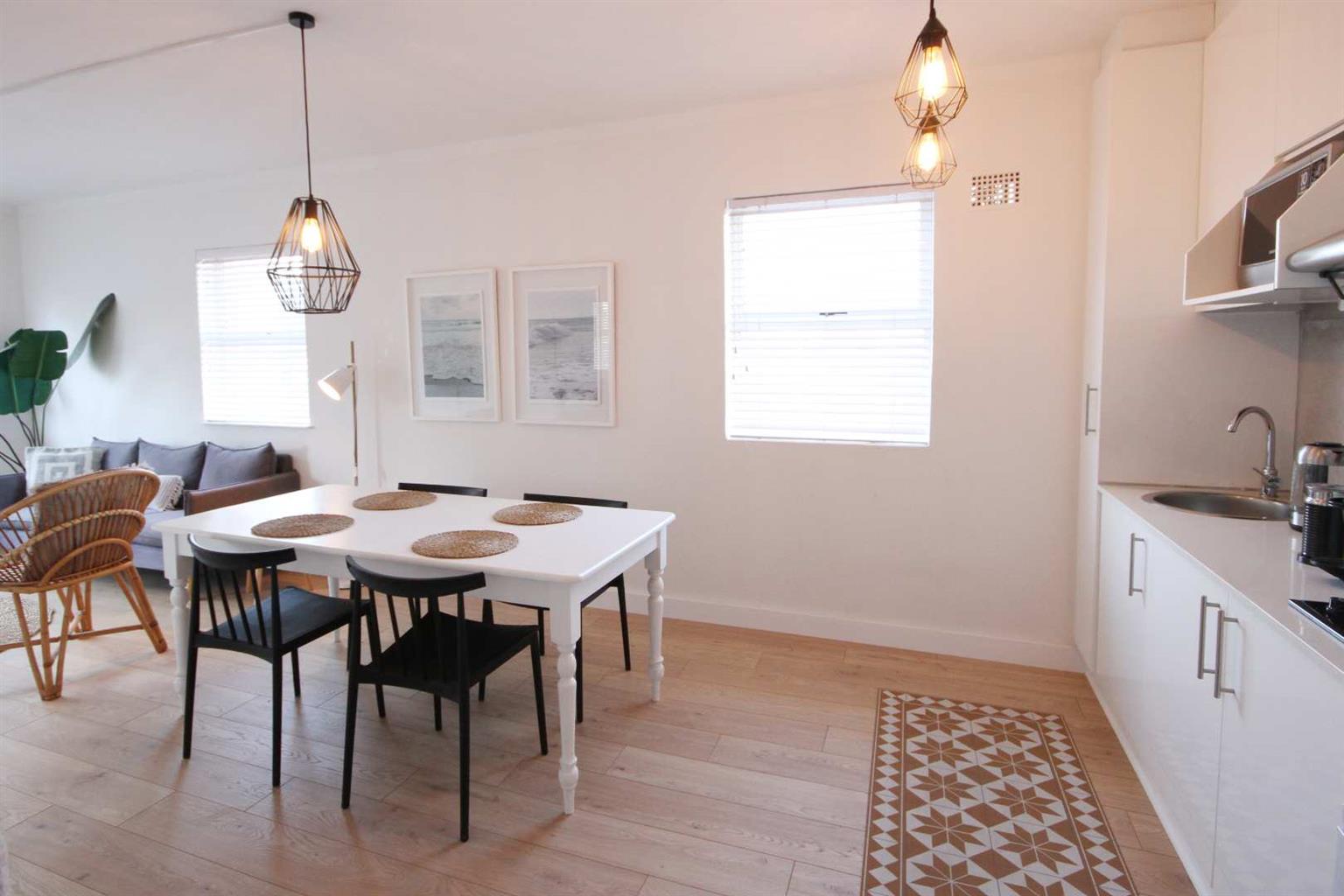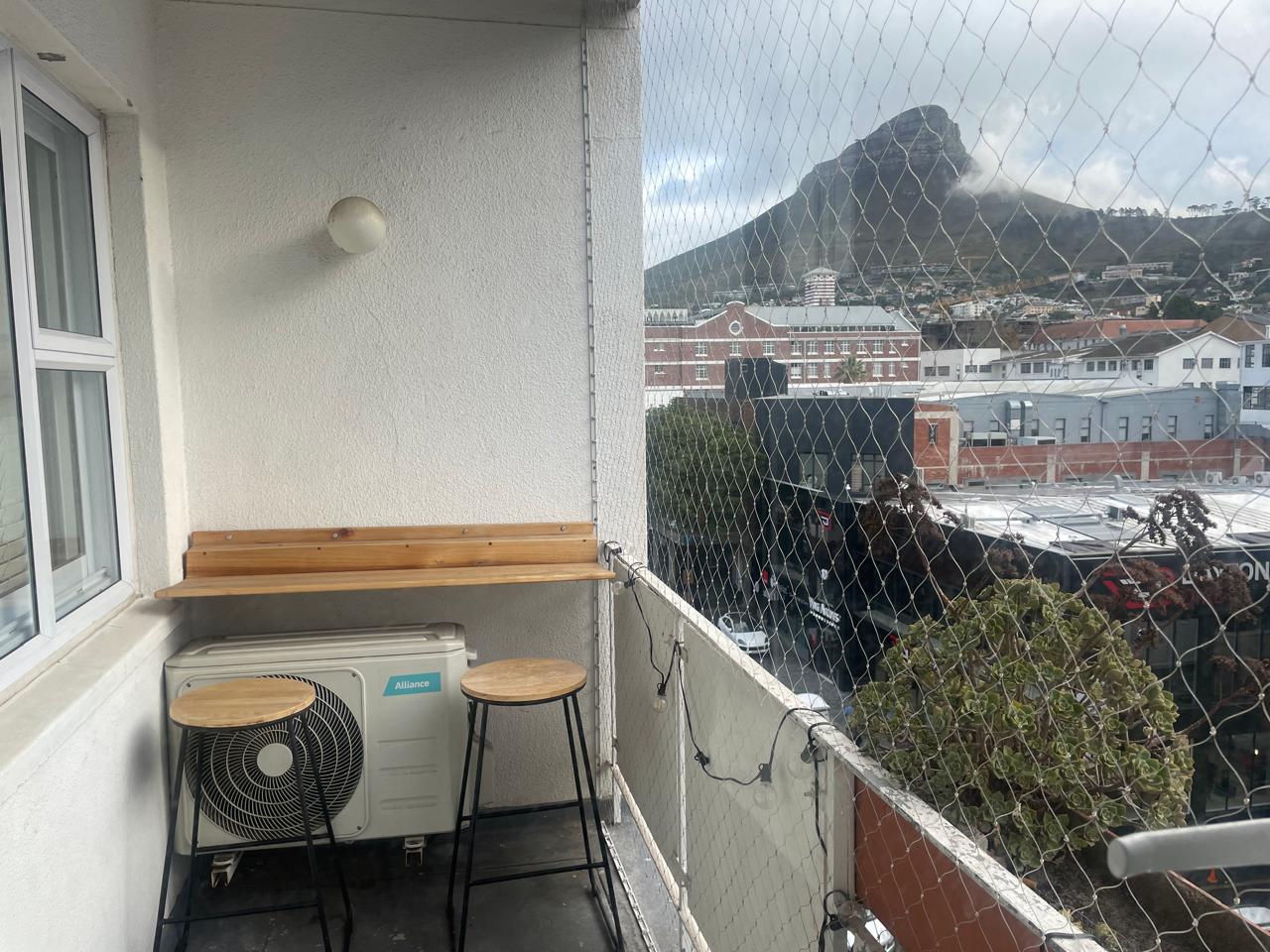 AVAILABLE FROM 1ST DECEMBER 2025. Fully furnished and equipped 1 bedroom apartment on the 5th floor with great views down Long Street. Warm and sunny apartment in central location within walking distance of cbd and Kloof Street.