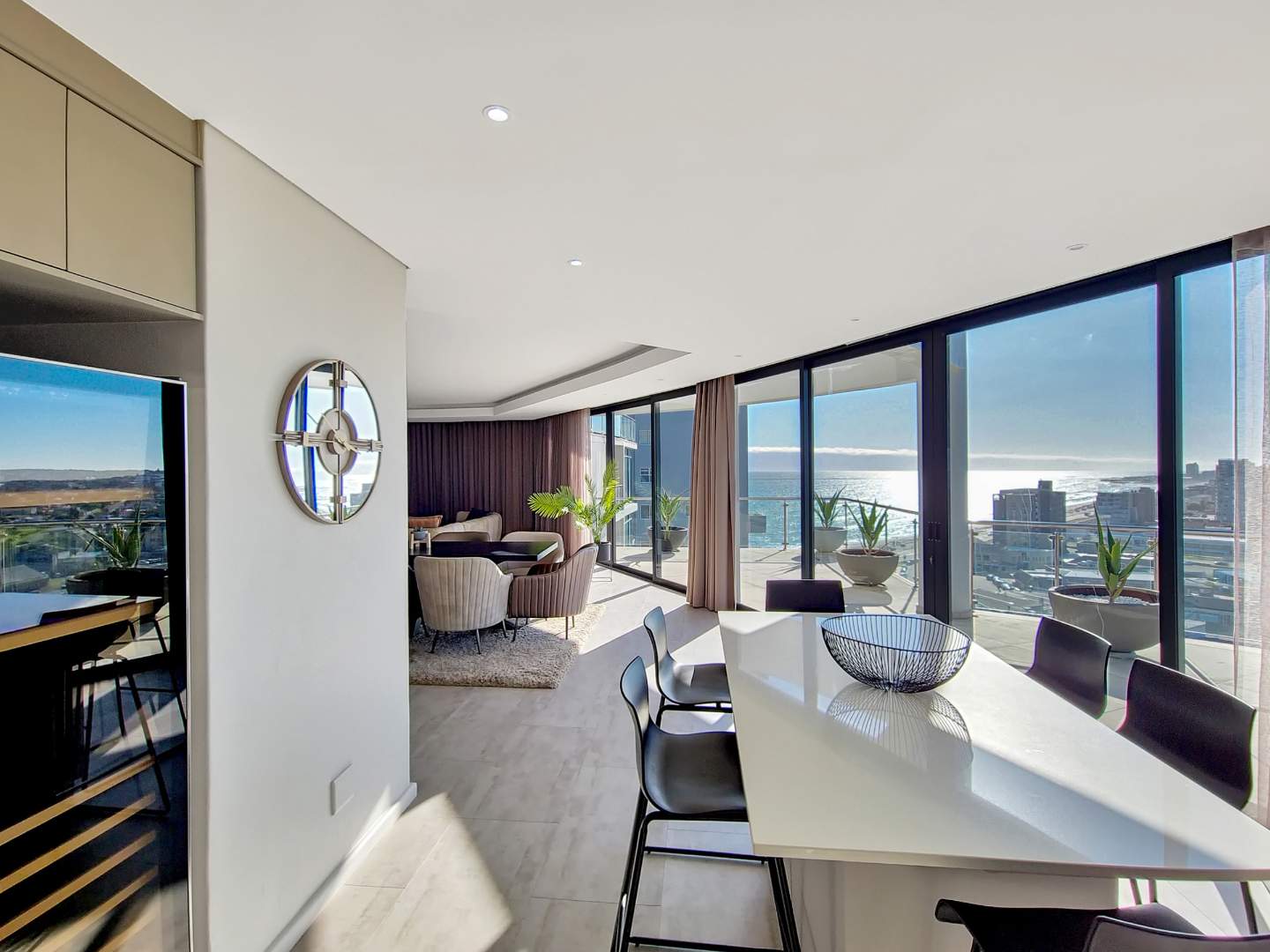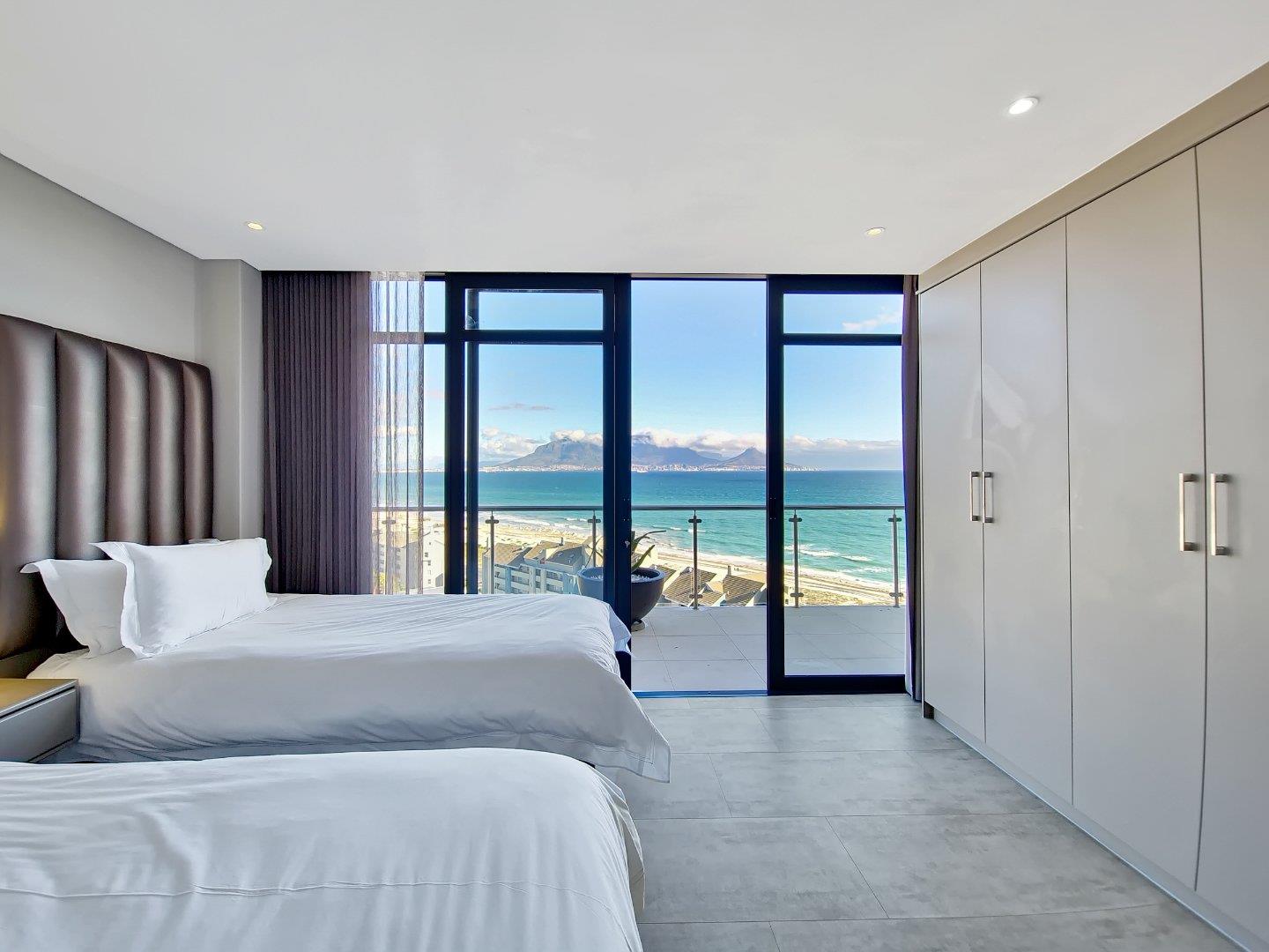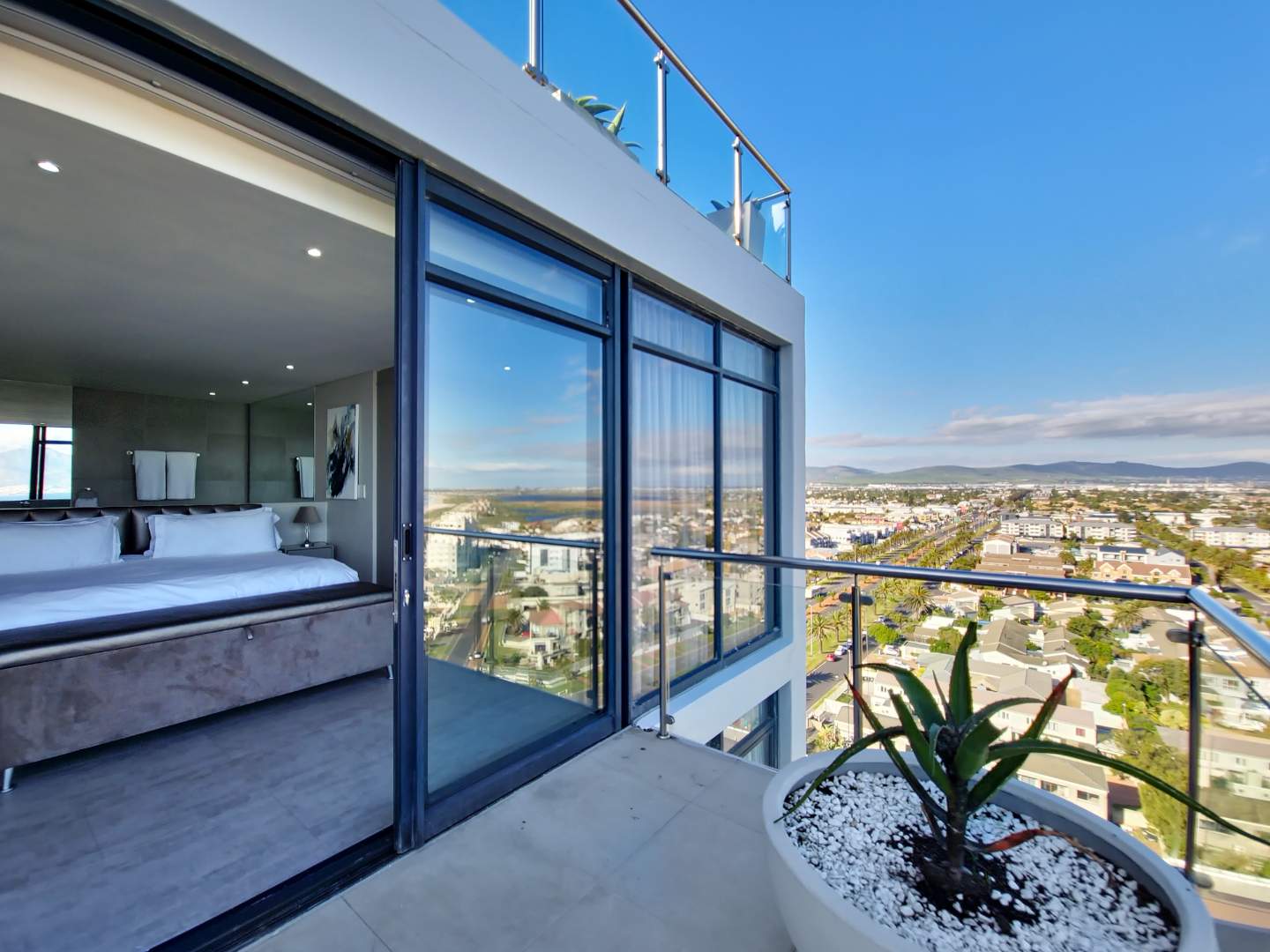 This exceptionally spacious penthouse offers the best views Cape Town has to offer, overlooking the iconic Table Mountain, Atlantic Ocean, Roben Island and all around to the hills of Durbanville. The exquisite, fully furnished penthouse offers unbridled luxury in the sky. Its position, a stone throw from Cape Towns famous kite surfers beach and numerous popular eateries, provides the perfect holiday accommodation or permanent residence.