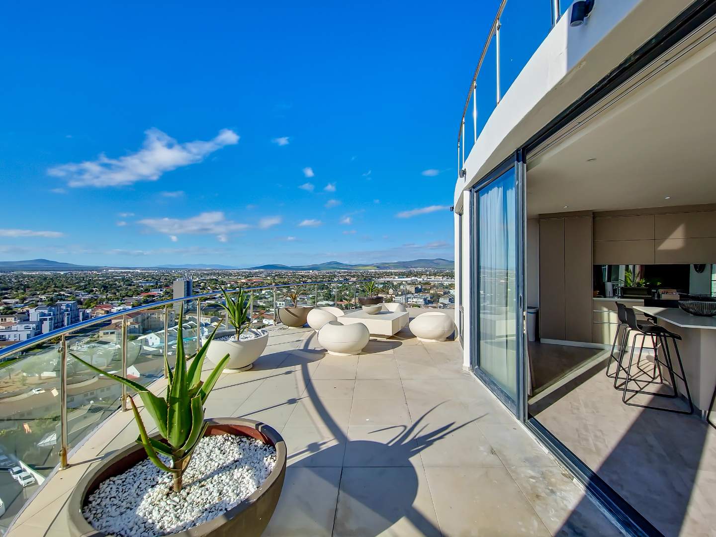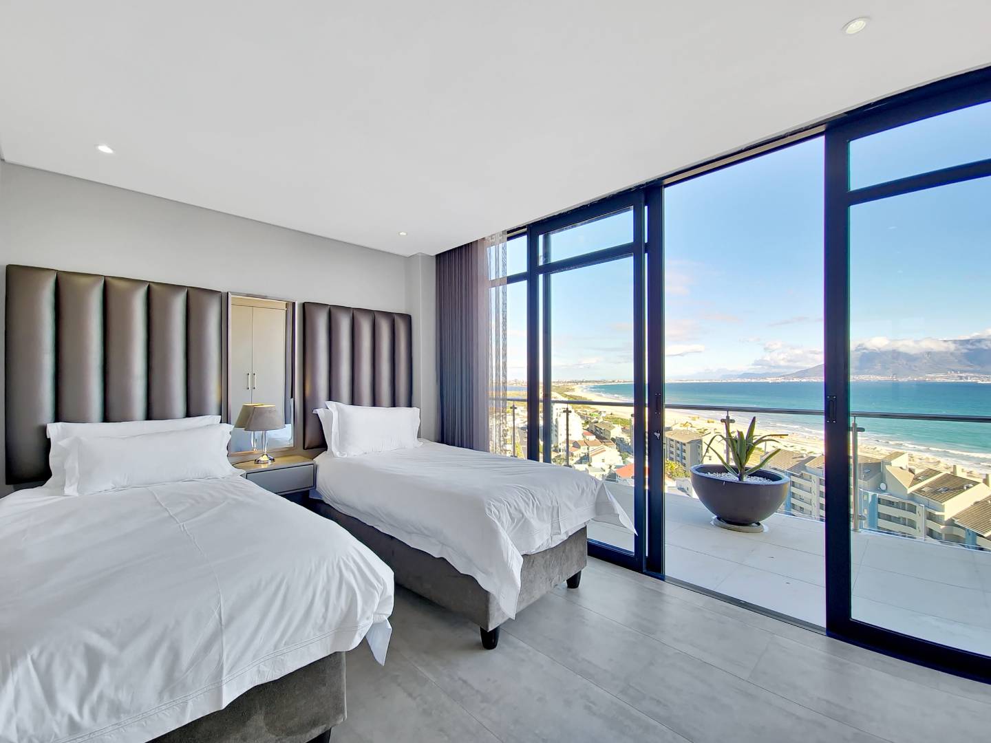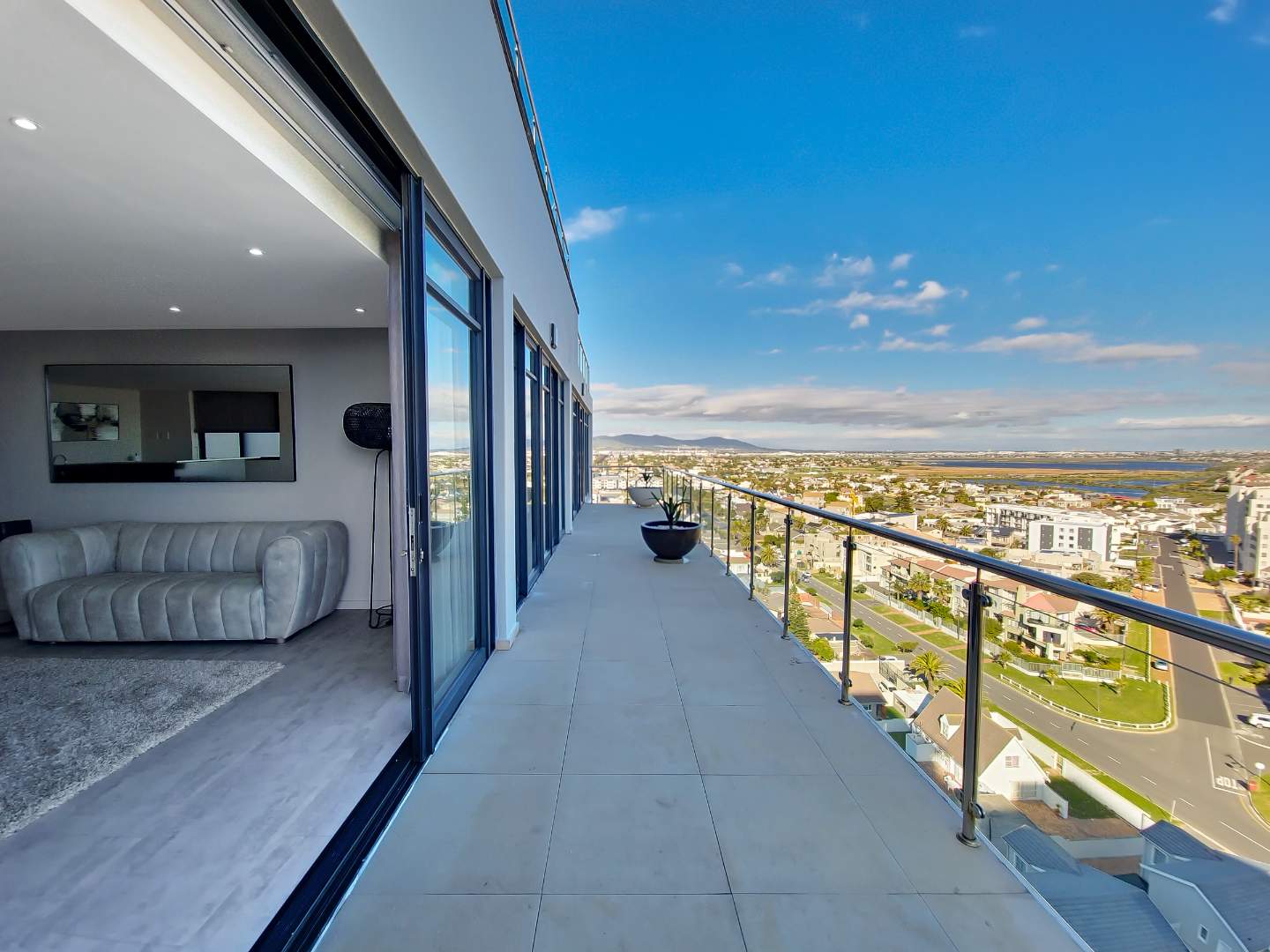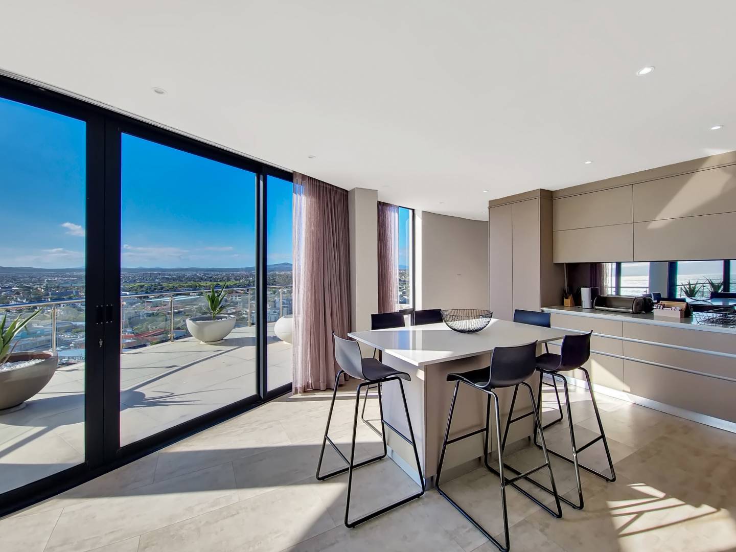This exceptionally spacious penthouse offers the best views Cape Town has to offer, overlooking the iconic Table Mountain, Atlantic Ocean, Roben Island and all around to the hills of Durbanville. The exquisite, fully furnished penthouse offers unbridled luxury in the sky. Its position, a stone throw from Cape Towns famous kite surfers beach and numerous popular eateries, provides the perfect holiday accommodation or permanent residence.
