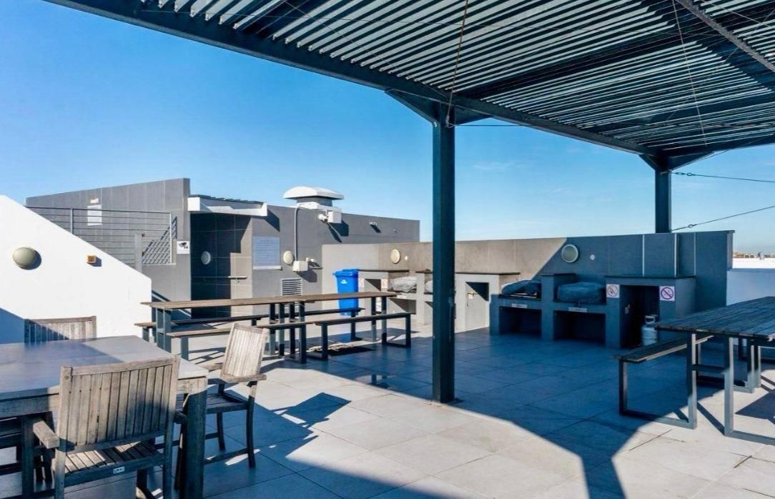 Residents benefit from secure underground parking, a rooftop pool and braai area, coin-operated laundry facilities, and 24-hour manned security.