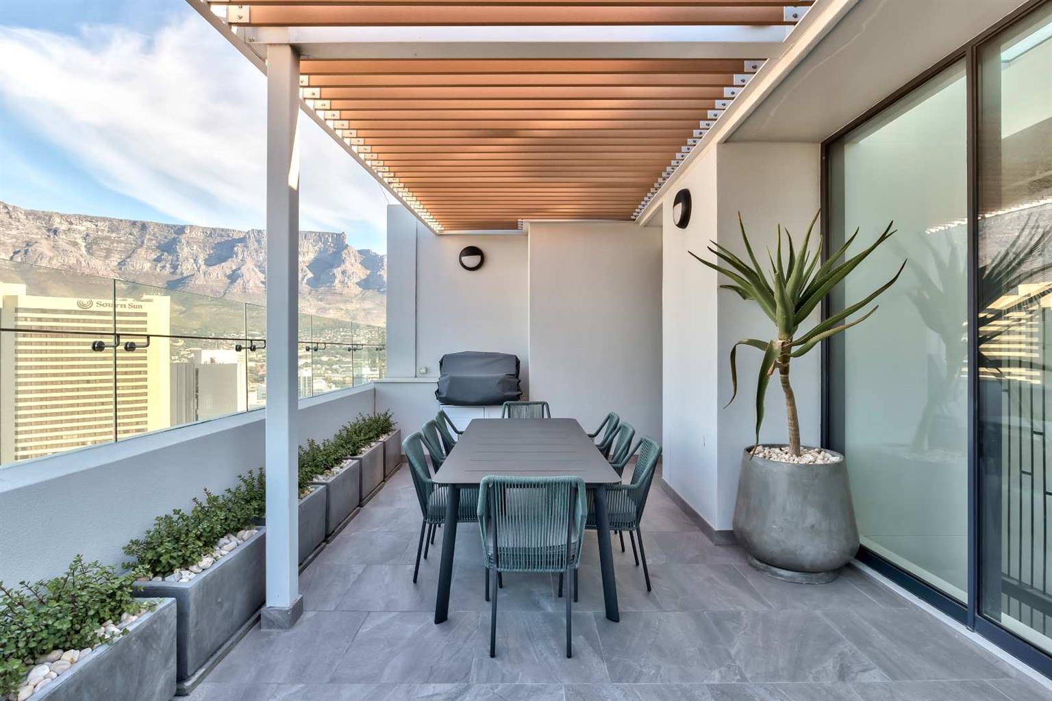 Experience luxury living in this breathtaking 3-bed, 3.5-bath penthouse. Spanning three levels, this stunning home offers open-plan living and dining, a sleek kitchen, and cozy day-bed nooks. The main bedroom features a private reading nook and en-suite. Soak up the views of Table Mountain & Atlantic Ocean from every level, or unwind on your private rooftop terrace. Enjoy access to the buildings communal rooftop pool, entertainment area, and gas BBQs all with unbeatable views.