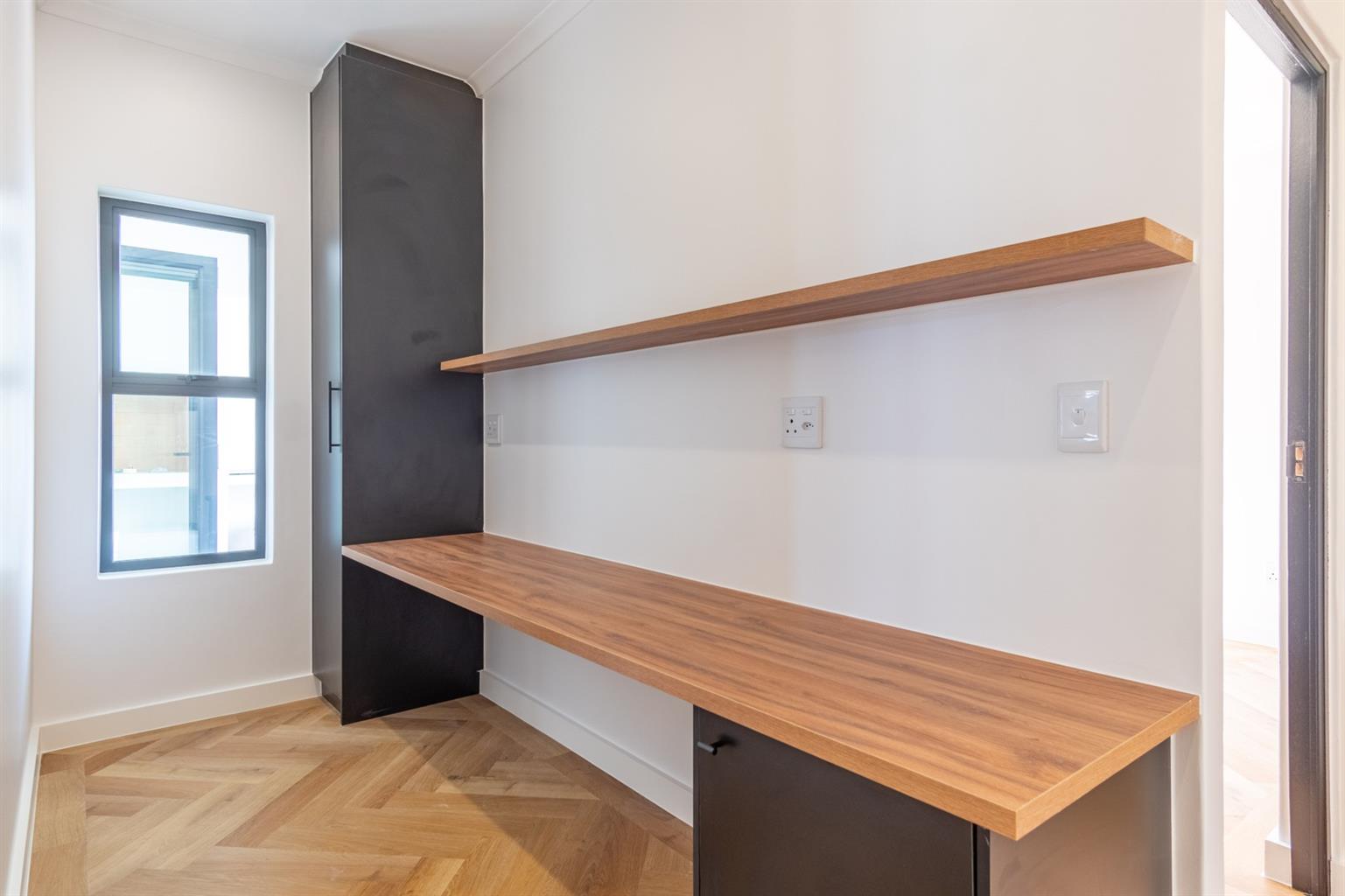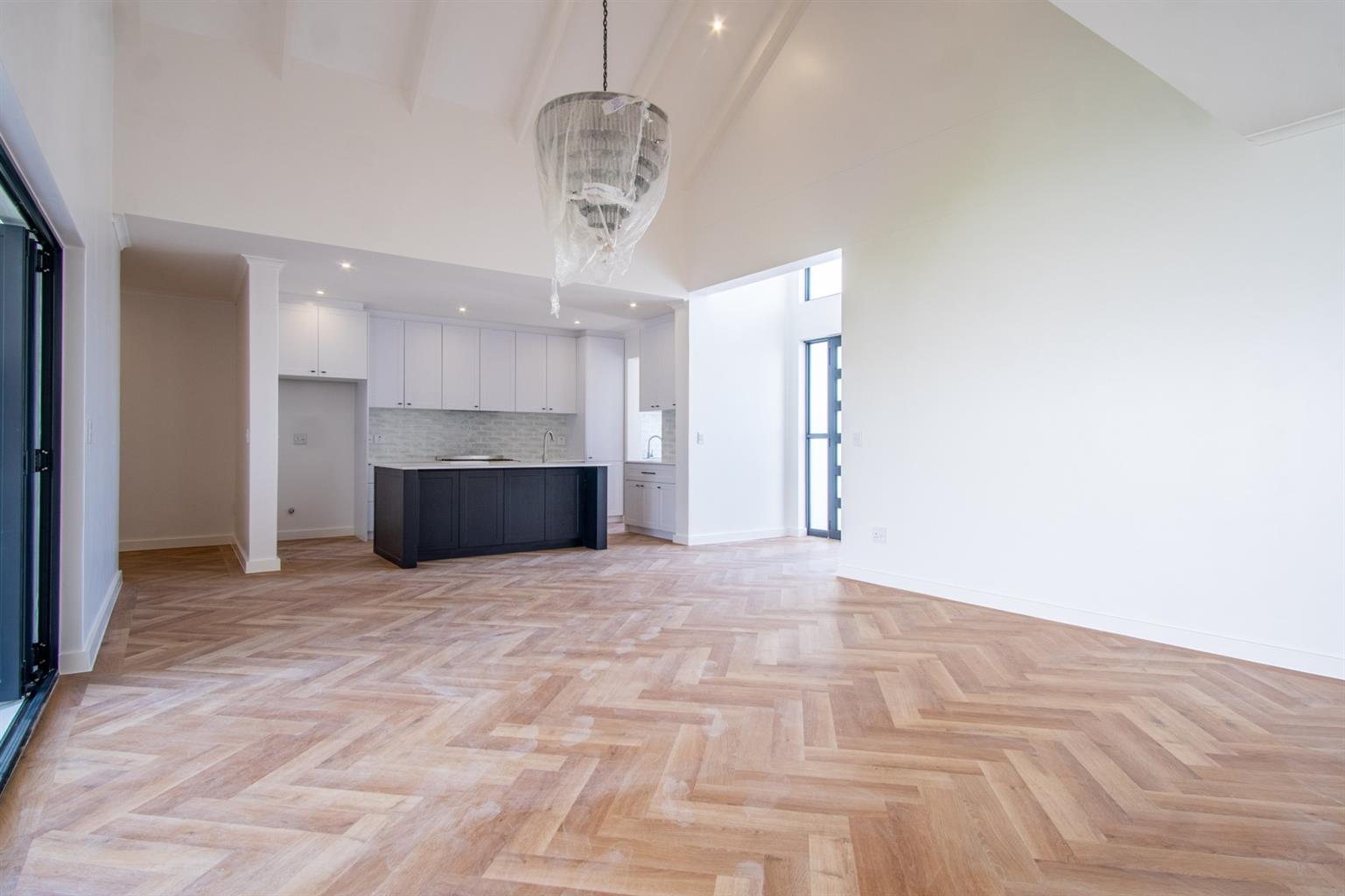 Throughout the home, the herringbone wooden-styled vinyl flooring adds warmth and texture, tying the contemporary design together with a subtle farmhouse feel. A dedicated study nook provides a quiet corner for work or study, while the covered braai patio extends the living space outdoors, making it ideal for year-round entertaining.