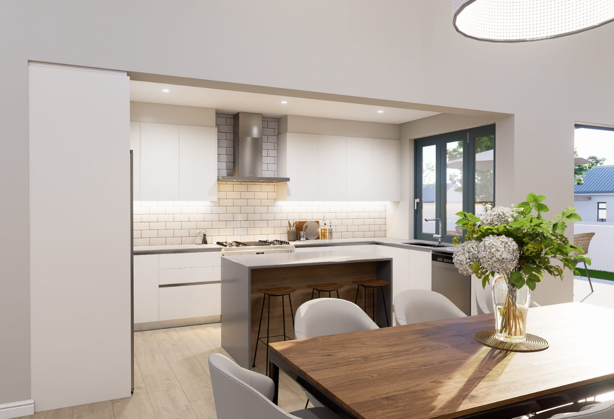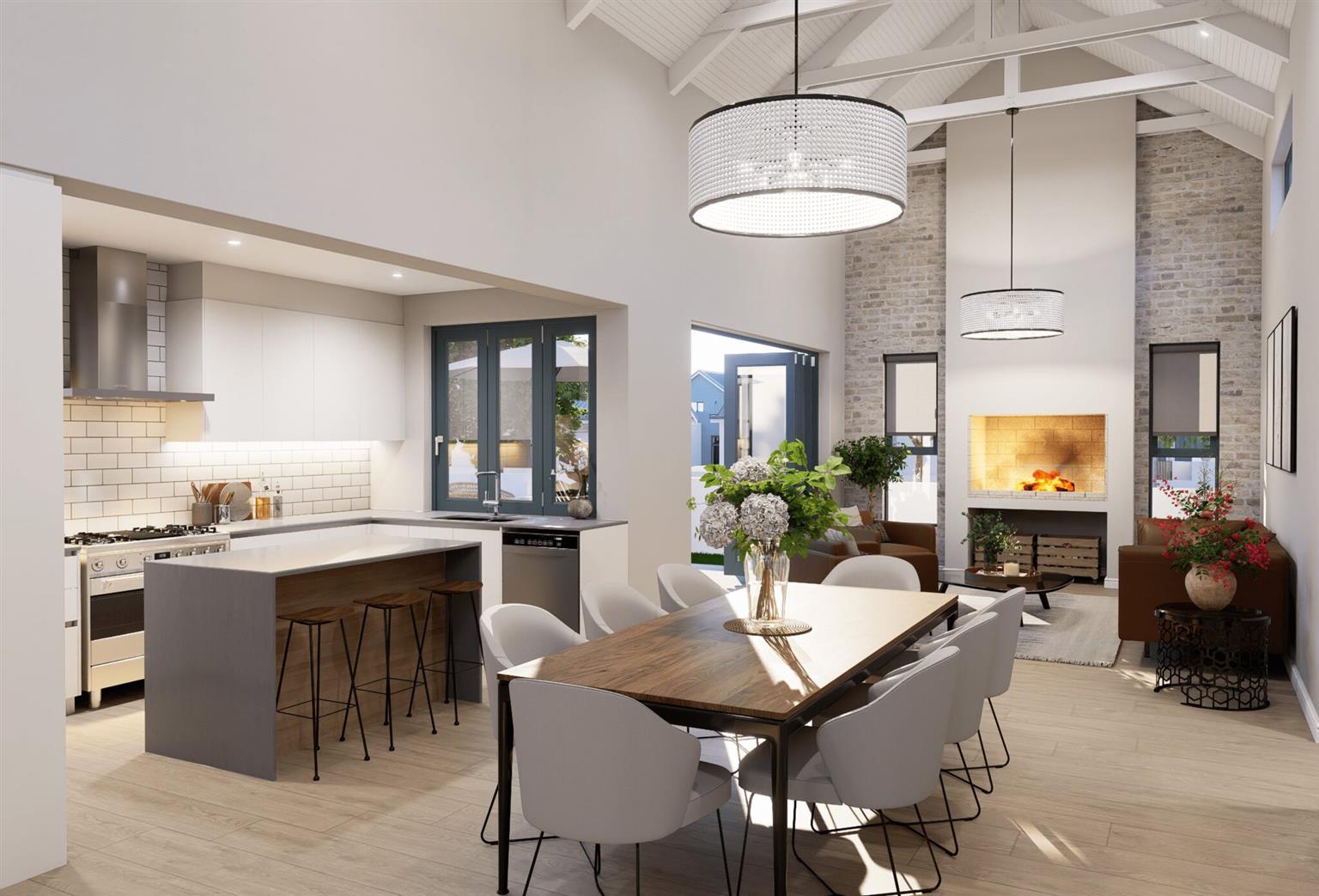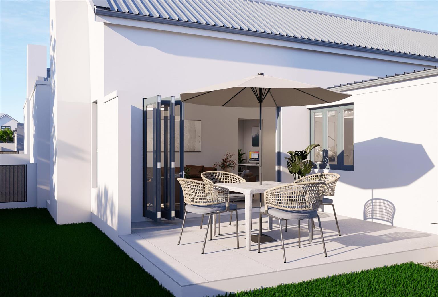 This stylish ground-floor home features 2 bedrooms, 2 bathrooms, and a dedicated study—perfect for working from home or extra space. The open plan living and dining area includes a built-in braai, creating a warm and inviting atmosphere that flows out to a private patio. A double garage adds to the convenience.