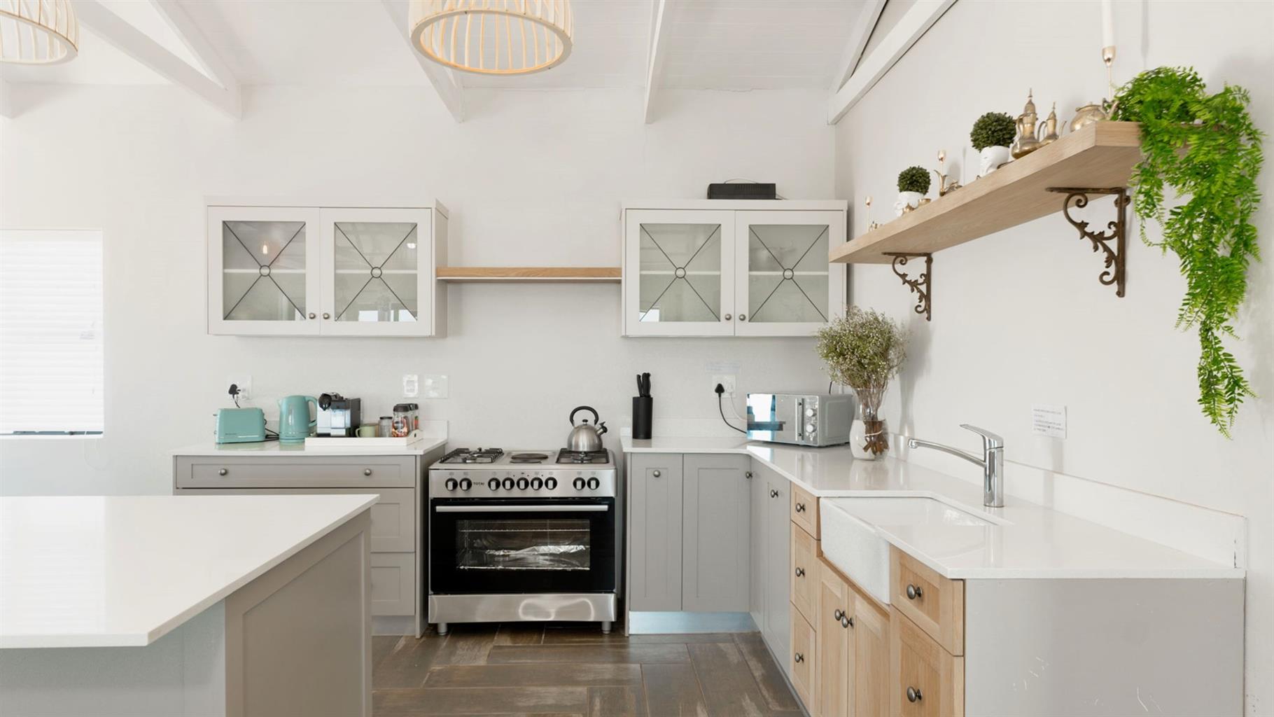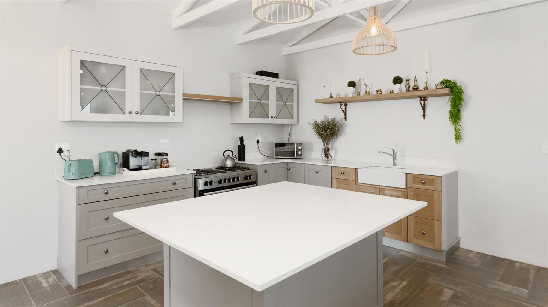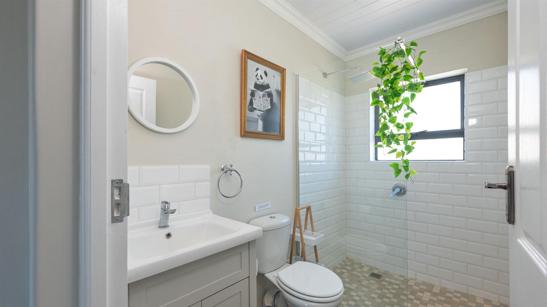 Discover the seamless harmony of modern living in the open-plan layout, where the living, dining, and kitchen effortlessly flow into one another, creating a cohesive and inviting space. The kitchen stands out as a beautiful focal point and is complemented by a convenient separate scullery. The living area extends seamlessly to a balcony, providing a perfect retreat with glimpses of the sea. The main home boasts two well-appointed bedrooms, each accompanied by its own bathroom, with one serving as a private en-suite.