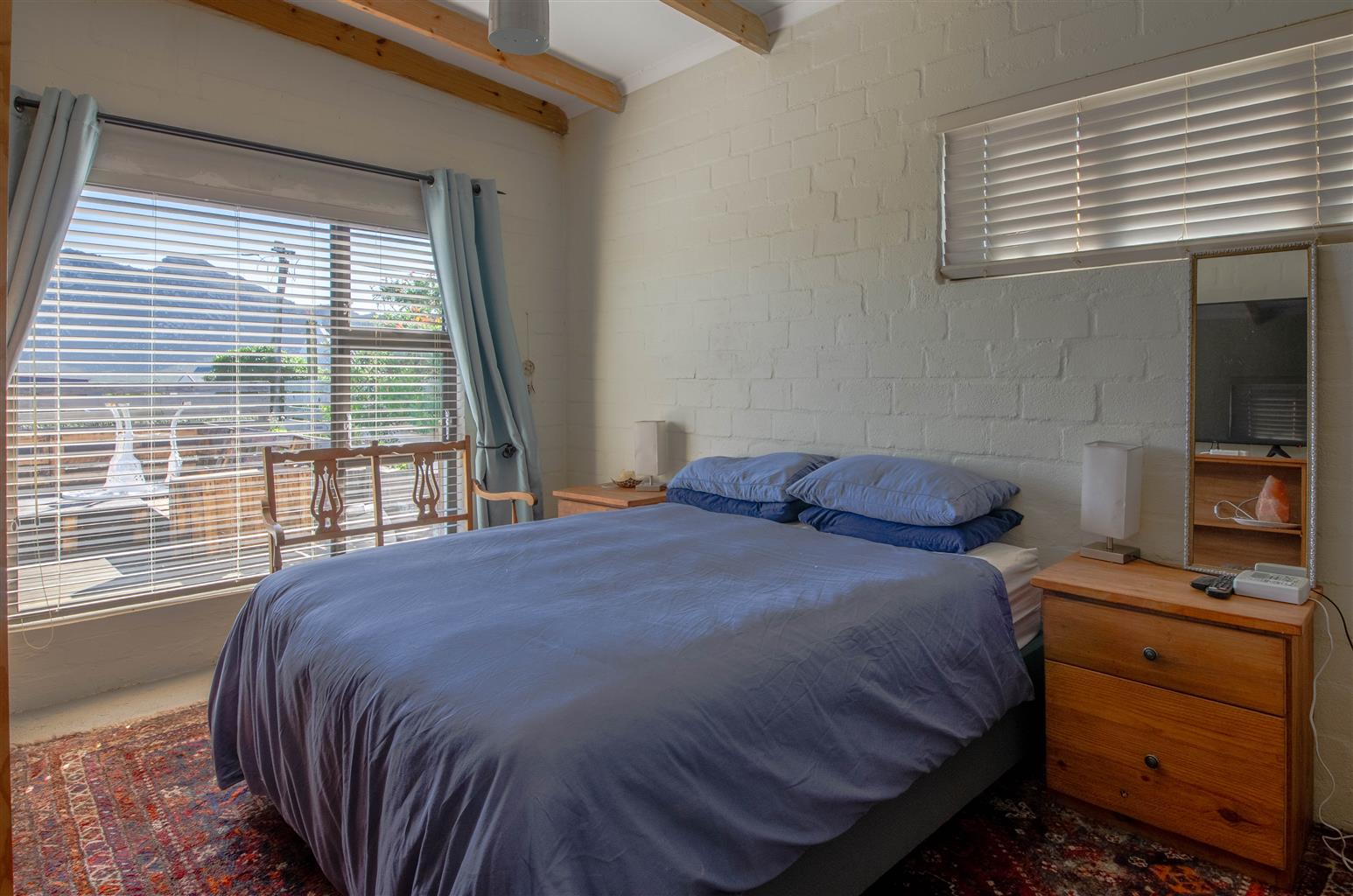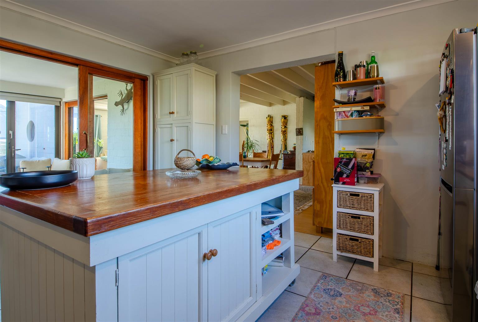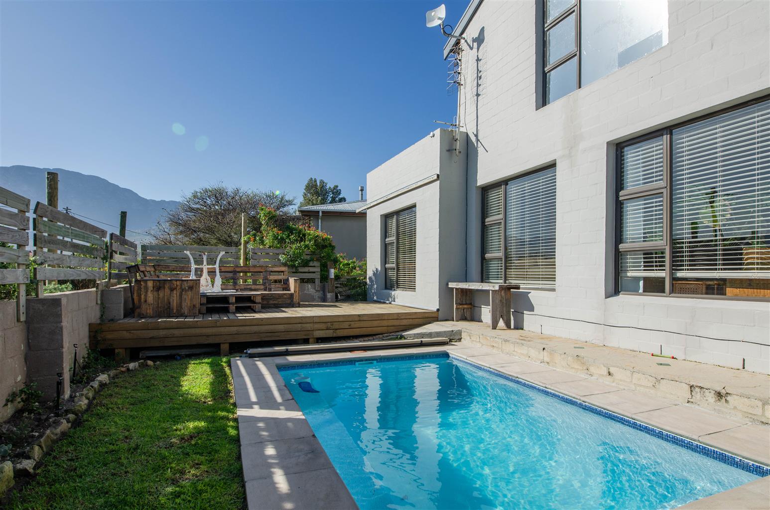 Inside, the open-plan living area flows into a dining room and practical, character-filled kitchen. The kitchen is equipped with a gas hob and oven (included in the sale), and it connects directly to the spacious double garage with automated doors. Downstairs, you'll find two generous bedrooms (one en-suite), and a second separate bathroom. The built-in braai on the veranda is both practical and inviting — because in Pringle Bay, swimming, socialising and sizzling over the coals really do happen in the same breath.