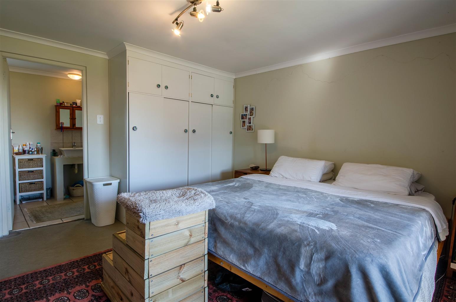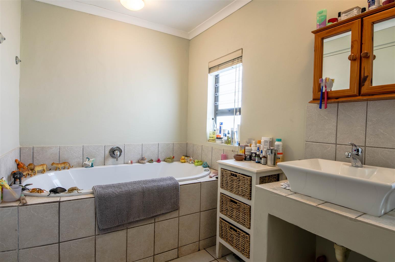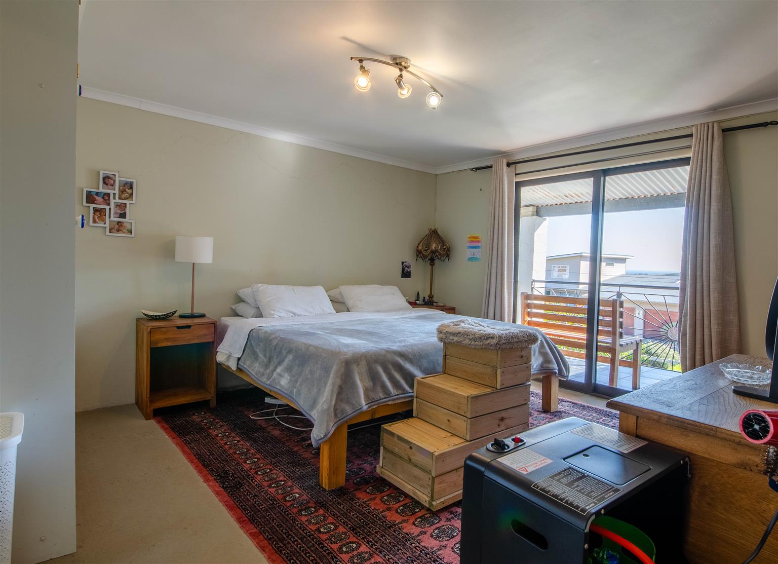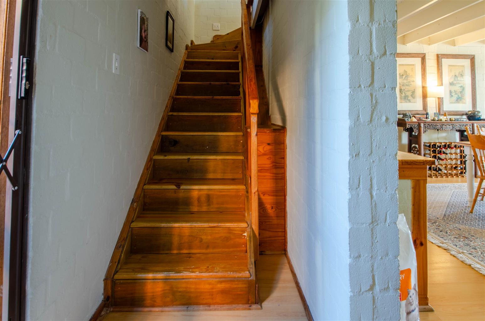 Inside, the open-plan living area flows into a dining room and practical, character-filled kitchen. The kitchen is equipped with a gas hob and oven (included in the sale), and it connects directly to the spacious double garage with automated doors. Downstairs, you'll find two generous bedrooms (one en-suite), and a second separate bathroom. The built-in braai on the veranda is both practical and inviting — because in Pringle Bay, swimming, socialising and sizzling over the coals really do happen in the same breath.