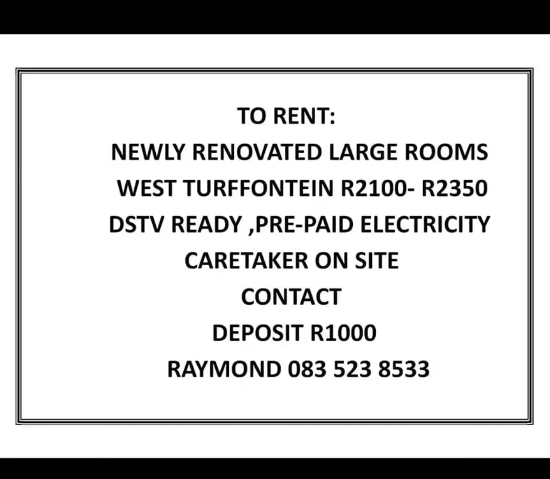 Newly renovated large rooms with wardrobes in West Turffontein.R2100-R2350.