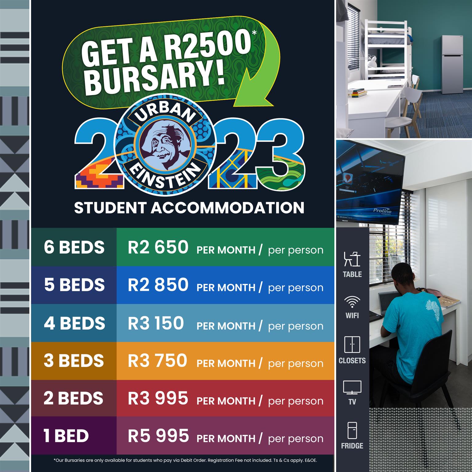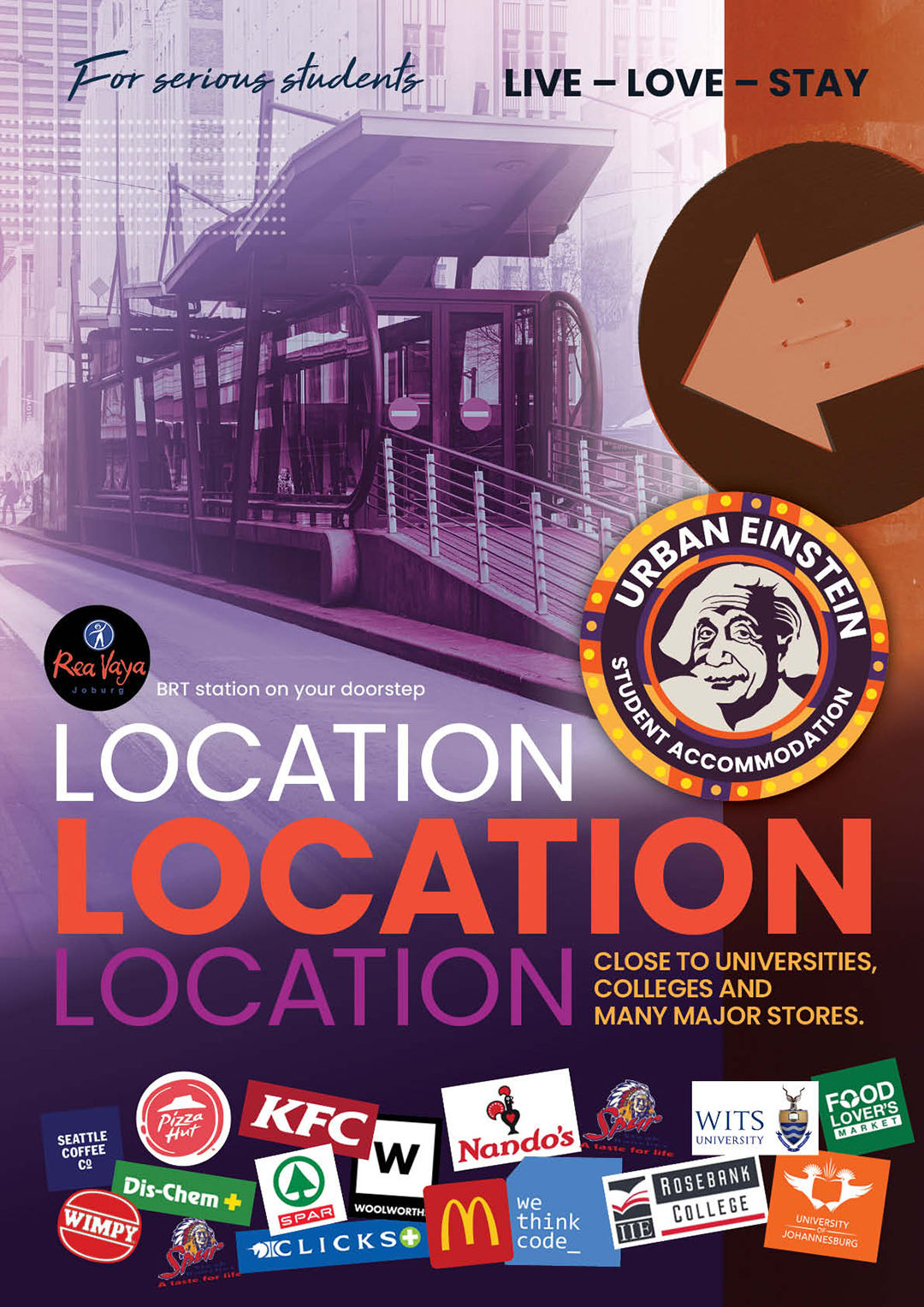 Urban Einstein accommodation for students and young professionals prides itself as a home away from home. Our top-class facilities lend Braamfontein new appeal as a premium housing location. Centrally positioned in the heart of the city of gold, the area boasts easy access to retail options and public transport routes. 1 to 6-sleeper rooms are on offer in both the St Andrews and 41A Rissik Street Buildings. The Female-only Residence has only 1, 2 and 4-sleeper rooms available. We strive to achieve a 21st century style of student living, empowering our residents to achieve not only their goals, but also the lifestyles they have always dreamed of. Join our community – say YES to a brighter future!