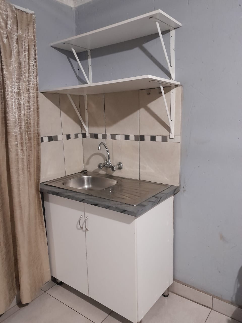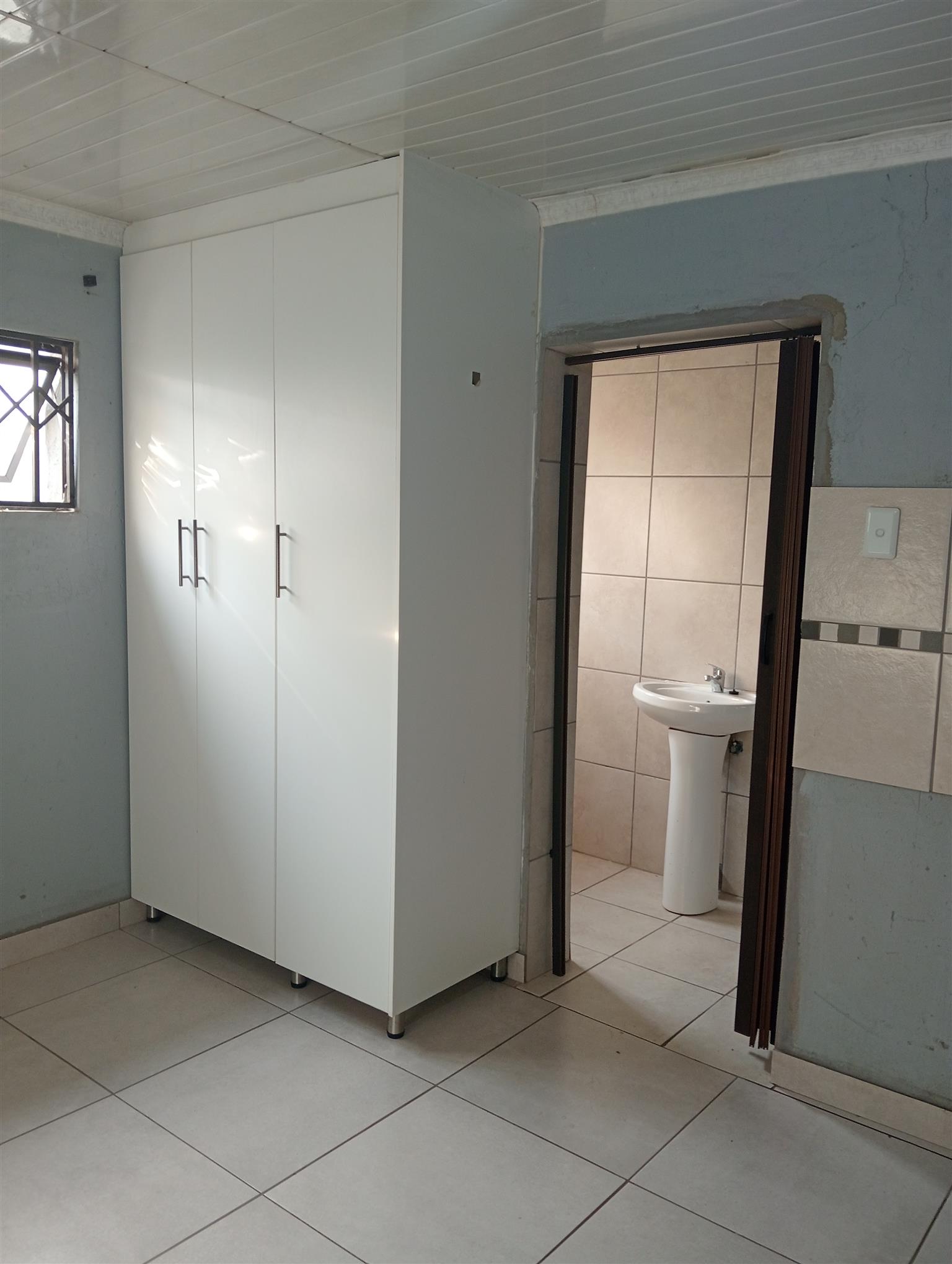 Room to rent in secure yard. Built in cupboards with mini kitchen, own shower. Small gas stove included. No landlord. Parking available. Prepaid electricity
