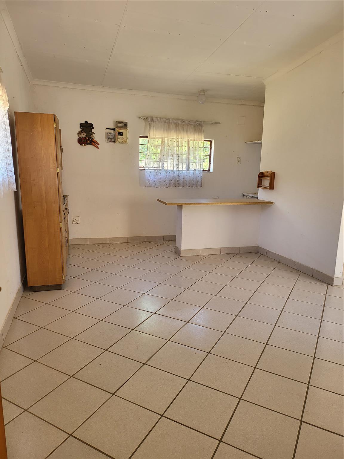 Garden flat to rent to 1 person with sober habits.Open plan 1 bedroom, lounge, kitchenette, open parking in front of the unit in secure agricultural small holding.Proof of income, 3 months bank statements, deposit and previous place reference are required.