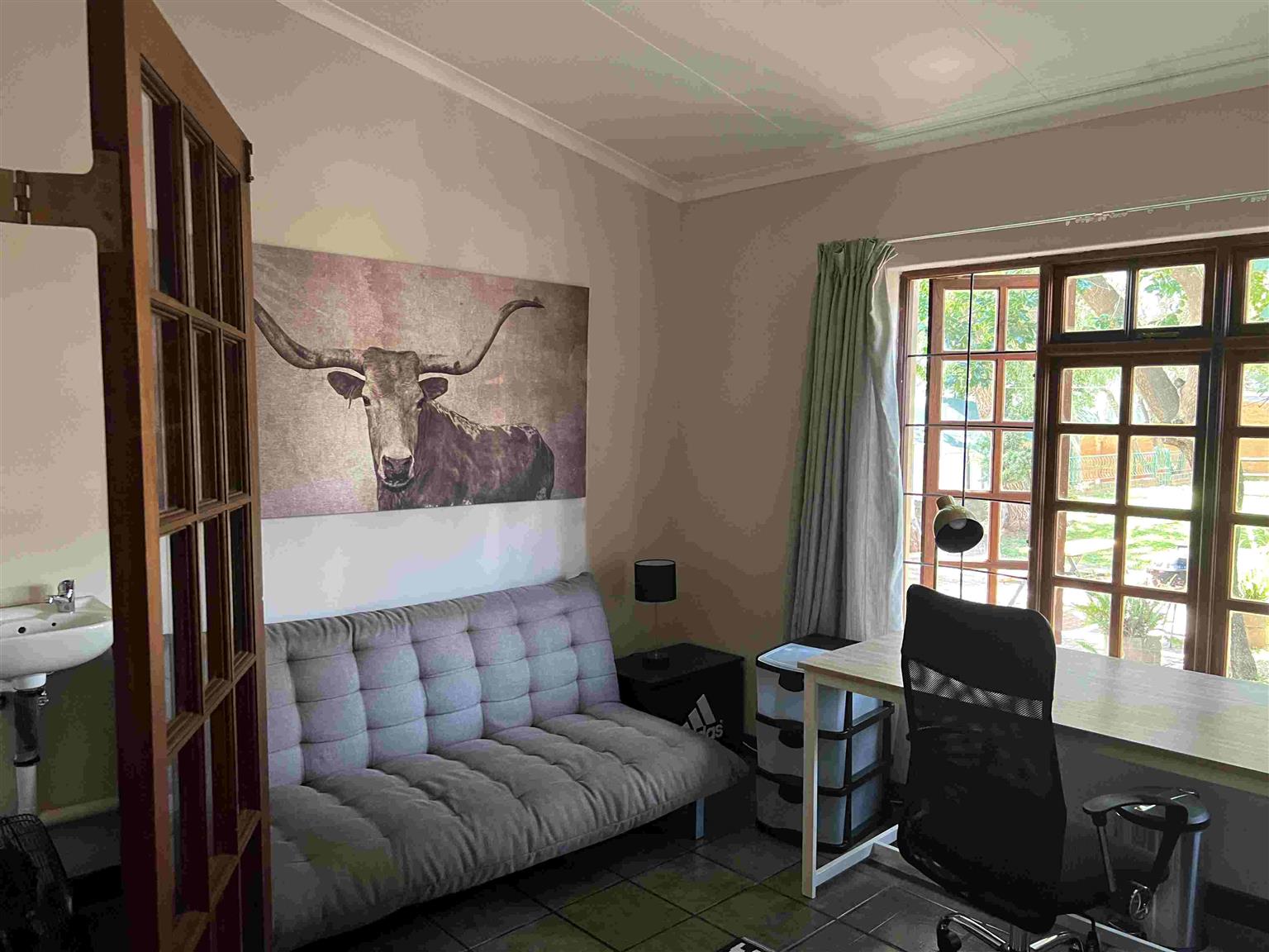 Built-in cupboards. Includes 5G wifi, cleaning services (and laundry), garden services, and safe and adequate parking. The property has a double gate for extra security as well as a caretaker who stays in the yard. Within walking distance to Loftus Park and UP. Water included electricity prepaid and gas geysers.