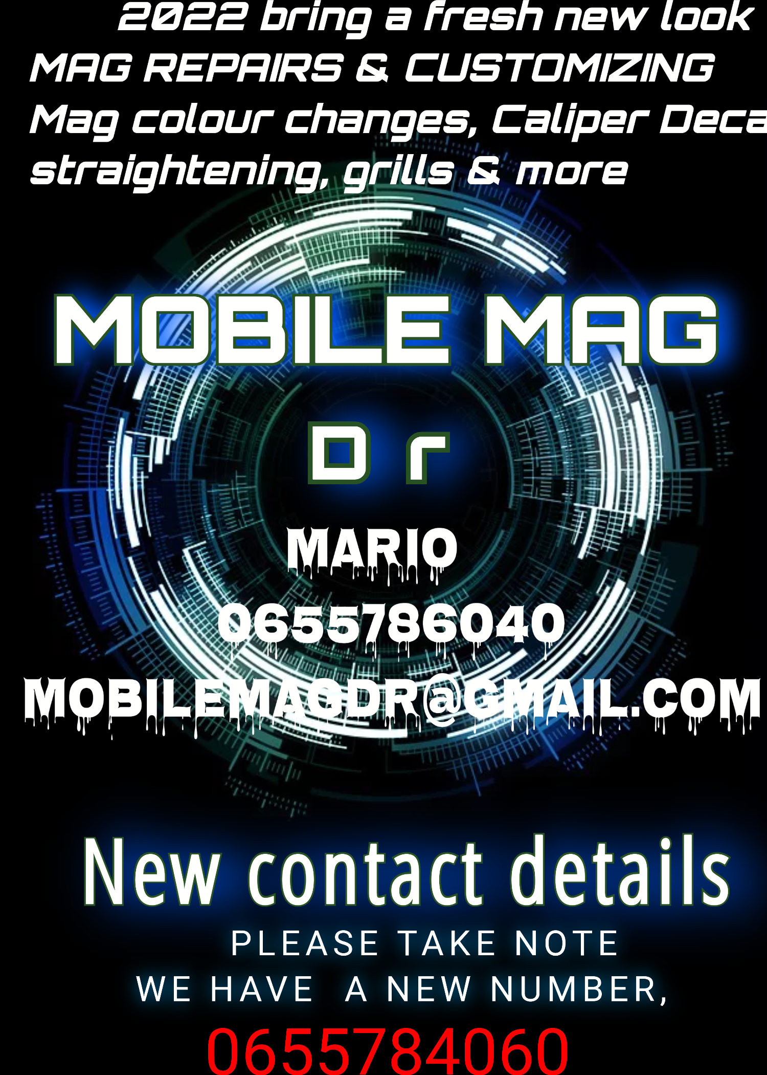 MOBILE MAG DR we specialize in mag customizing and repairs, 4 mag colour changes, Caliper Decal, straightening, Grill blackouts and more.