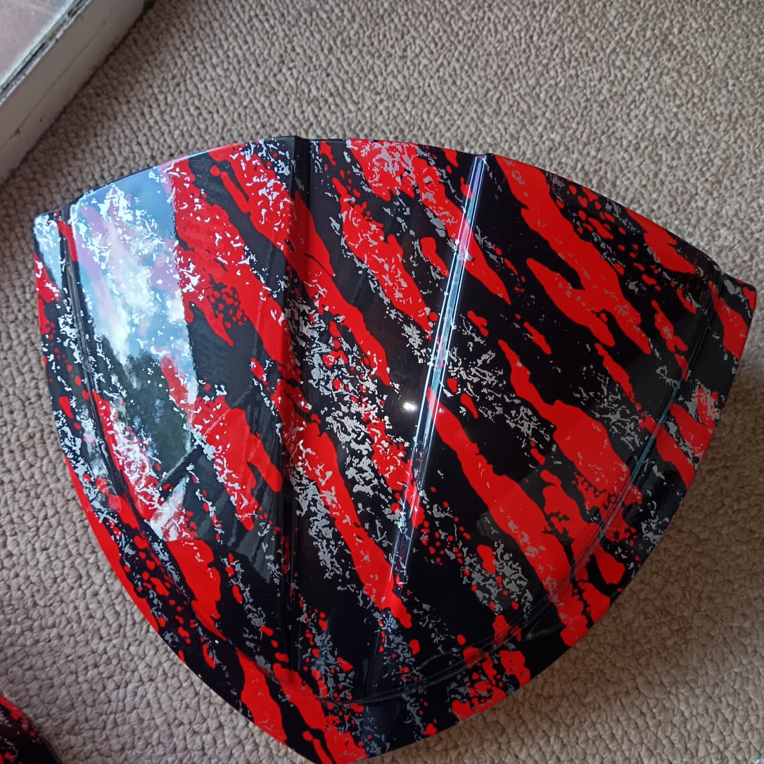 Want your bike to turn heads everywhere you ride? We specialize in custom hydrographic coatings (hydrodipping) that give your motorcycle parts a unique, durable, and high-quality finish.