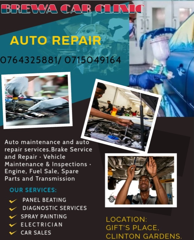 If you need a qualified auto mechanic to service your car with morden diagnostics, someone to spray your car nicely or someone to do a panelbeating work on your car or give your car the new look whereby no one will recognize the same car to be yours, we as well have towing services in place so no matter where you are we are just a phone call away from you. Our workshop has a modern machines and also we deal in petrol and diesel. You don't need to stress yourself about spare parts for your car because we have it all covered. All you need to do is to call 0764325881view more and we'll be at your service.