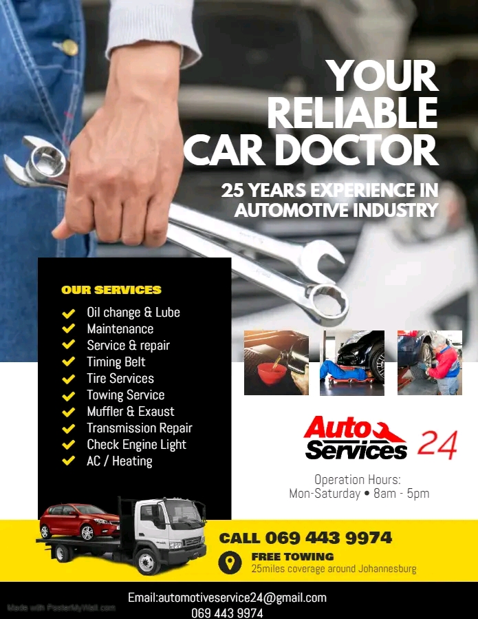 Motor vehicle repair services: (6 months guarantee on all jobs done by us)