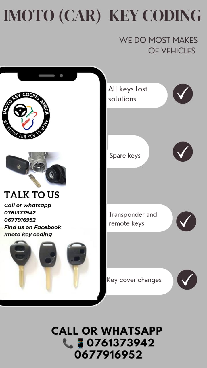We do car keys for most makes of vehicles all keys lost solutions, spare keys, transponder and remote key coding contact us now on WhatsApp or call us for more info