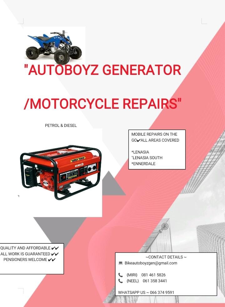 AUTOBOYZ GENERATOR & MOTORCYCLE REPAIRS AND SERVICES FOR ALL MAKES AND MODELS.