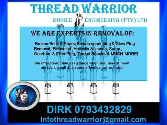 We are the Thread Repair Warroirs and here is some of the fields we specialise in: