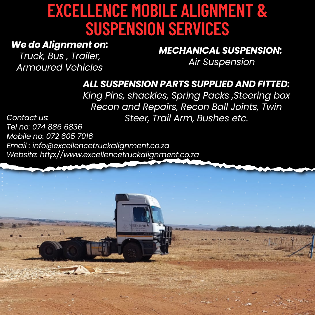 MOBILE Alignment on ALL Trucks, Busses, Trailers and Armoured Vehicles – We come to YOU!!!
