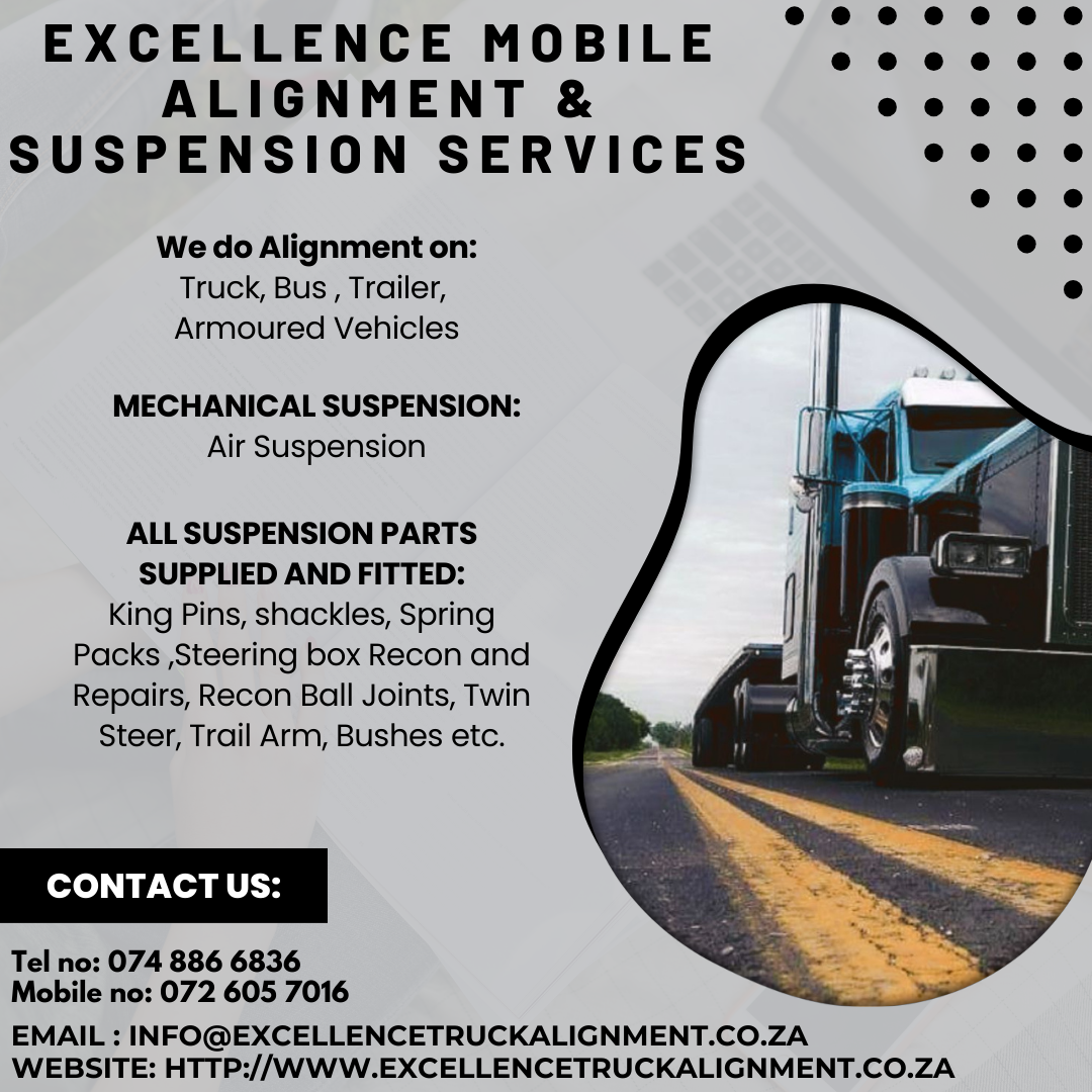 MOBILE Alignment on ALL Trucks, Busses, Trailers and Armoured Vehicles – We come to YOU!!!