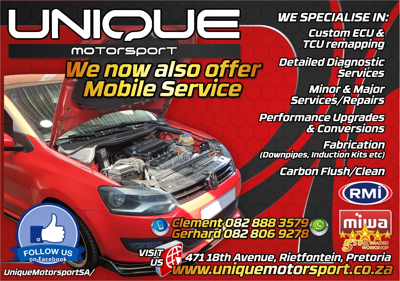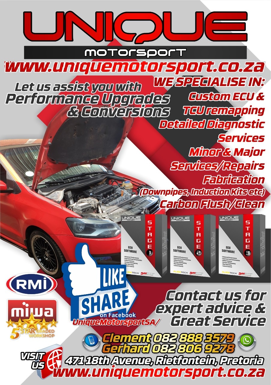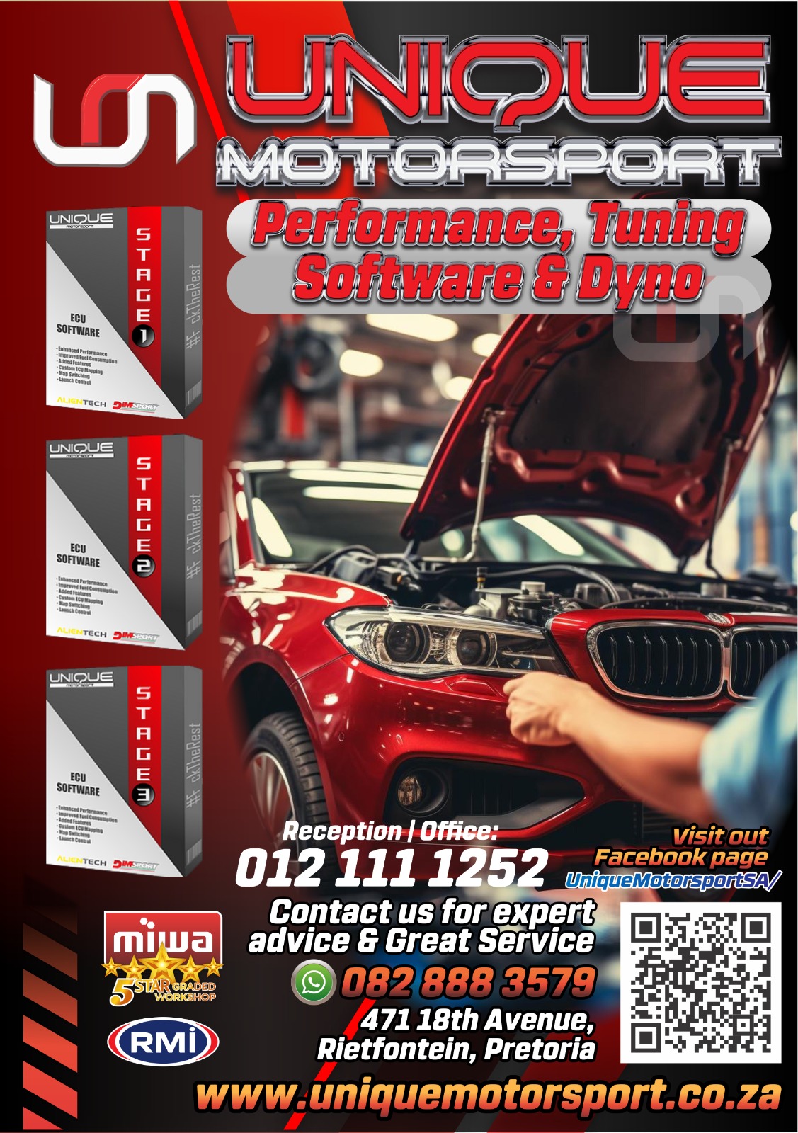 Unique Motorsport is an accredited RMI 5-Star graded Workshop and is based at 471, 18th Avenue, Rietfontein, Pretoria.