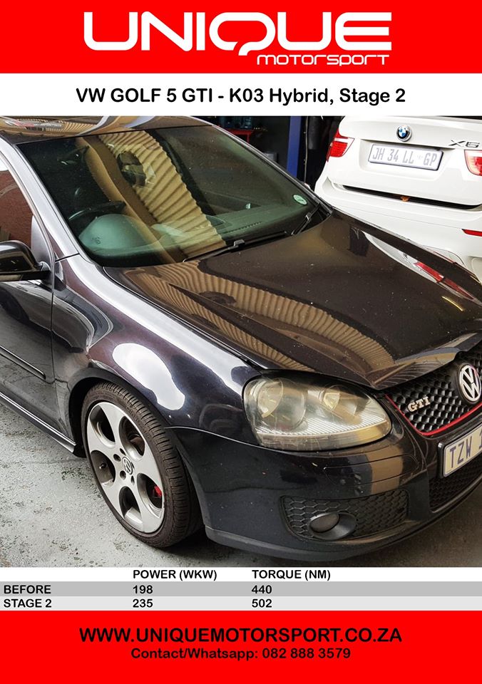 We also do performance modifications, including ECU chip tuning, DGS tuning, Downpipes, Performance exhausts, Cat-removal, Induction Kits as well as Servicing of vehicles and General Repairs.