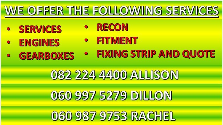 Mop Impact Auto, specialize in Engines, Gearboxes & Diffs. We do fitments as well, Services and Engine overhauls!!! All Gearboxes, Engines & Diffs are on exchange only!!! Please call for more information on – / / – Whats App. We are open on Public Holidays!!! All gearboxes and selective engines are sold strictly on exchange!!! Errors and Omissions Excepted!