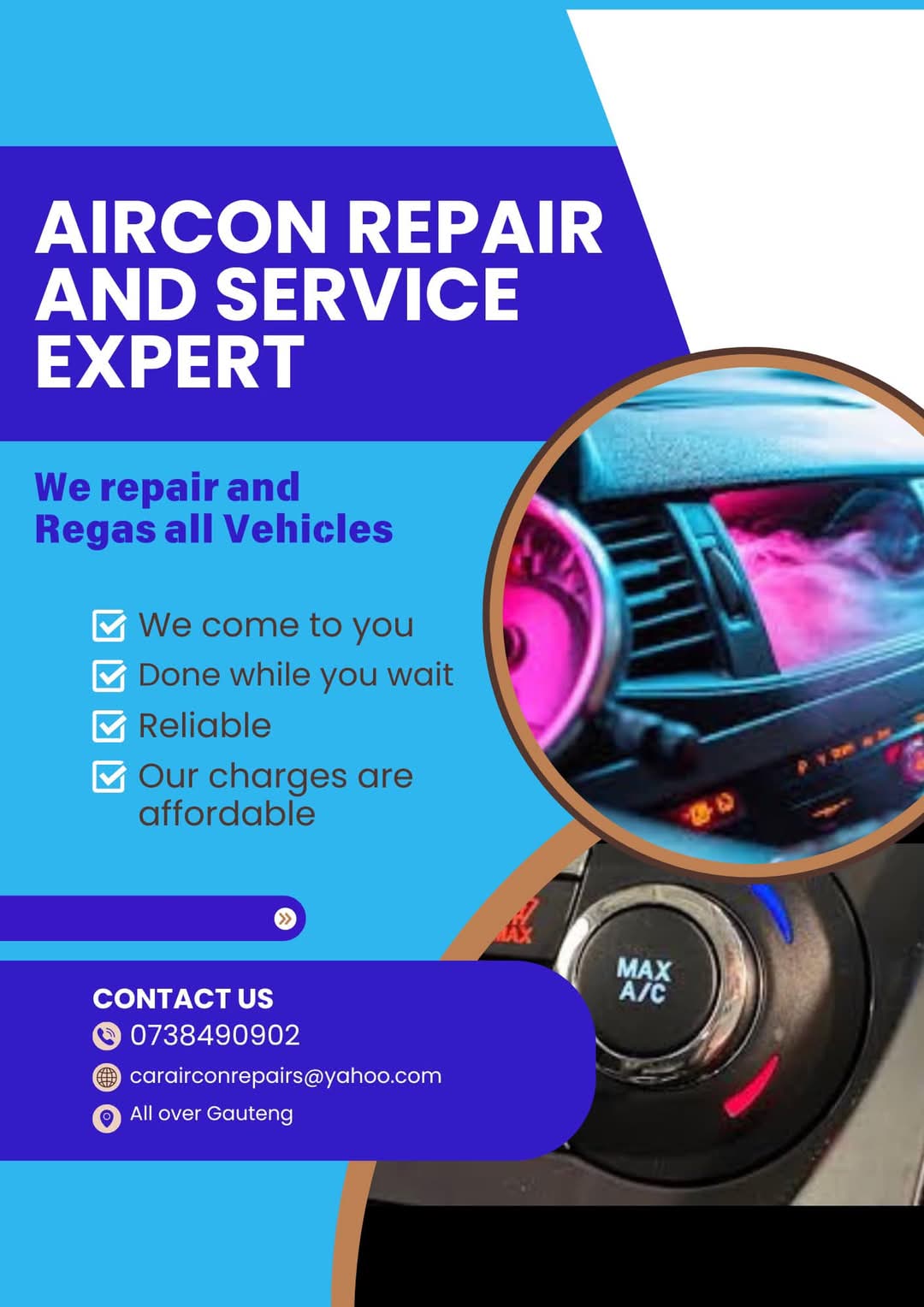 ALL VEHICLES AIRCON REGAS AND REPAIRS WE COME TO YOU 0738490902view more