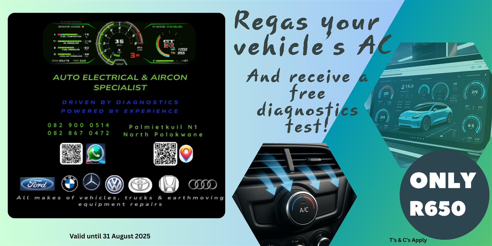 Winter Special valid until 31/08/2025 Regas your vehicle aircon and get a free diagnostic R650