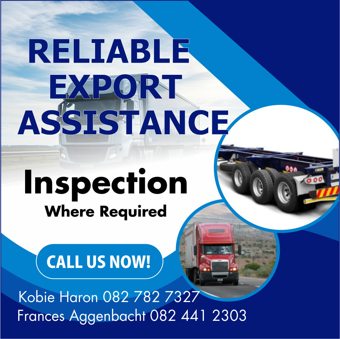 Inspection, where requiredWe can assist youCall us now:F&K LogisticsKobie Haron 082*782*7327 / Francis Aggenbacht 082*441*2303