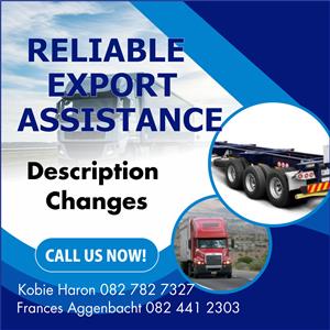 Registration of VehiclesWe can assist youCall us now: F&K LogisticsKobie Haron 082*782*7327 / Francis Aggenbacht 082*441*2303